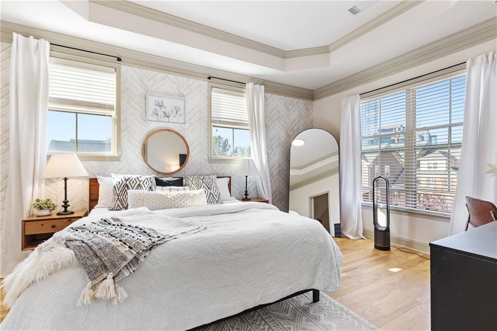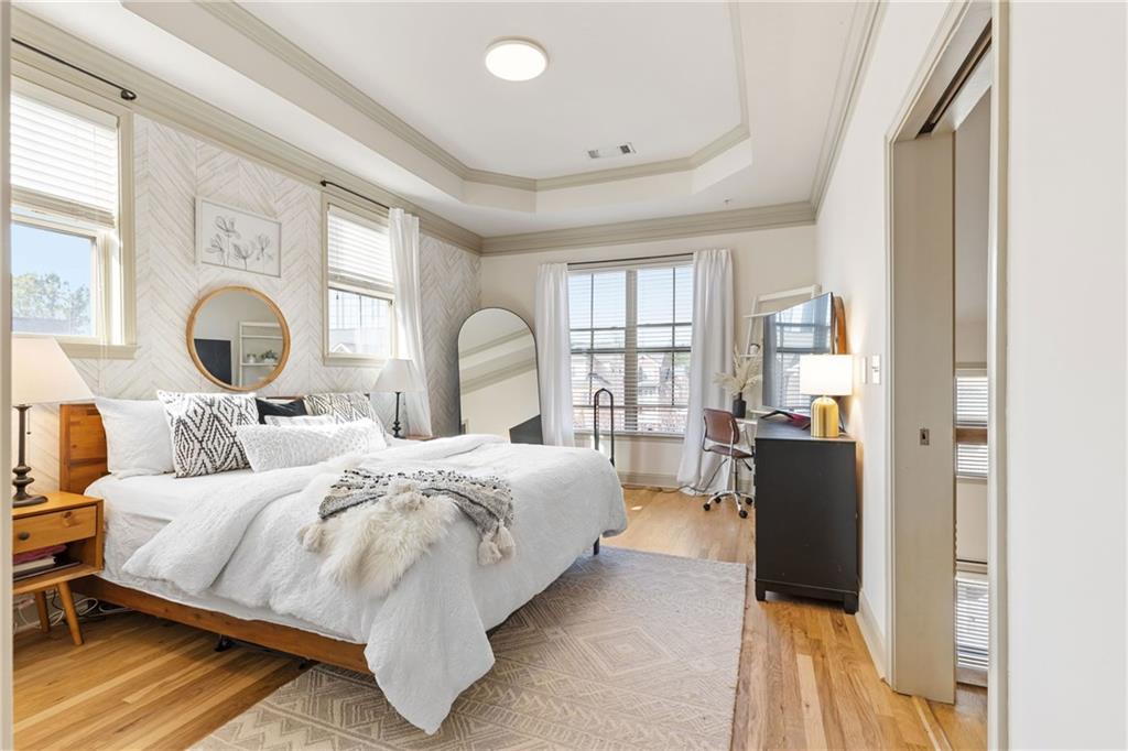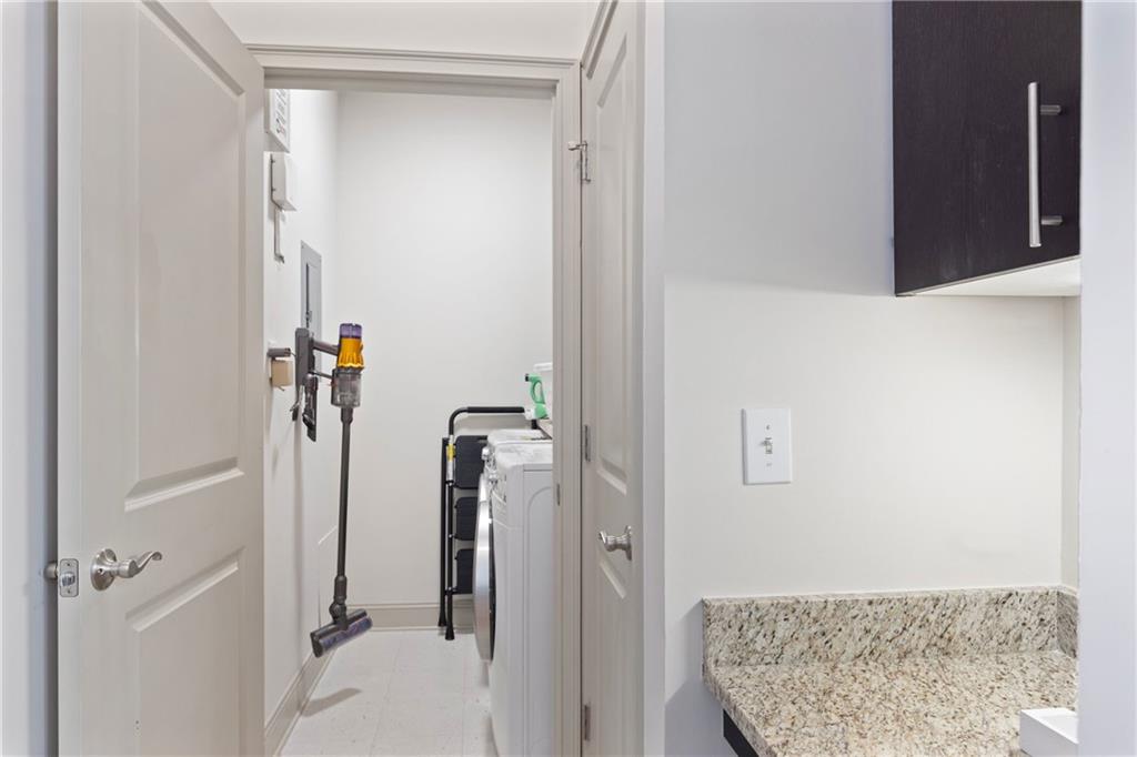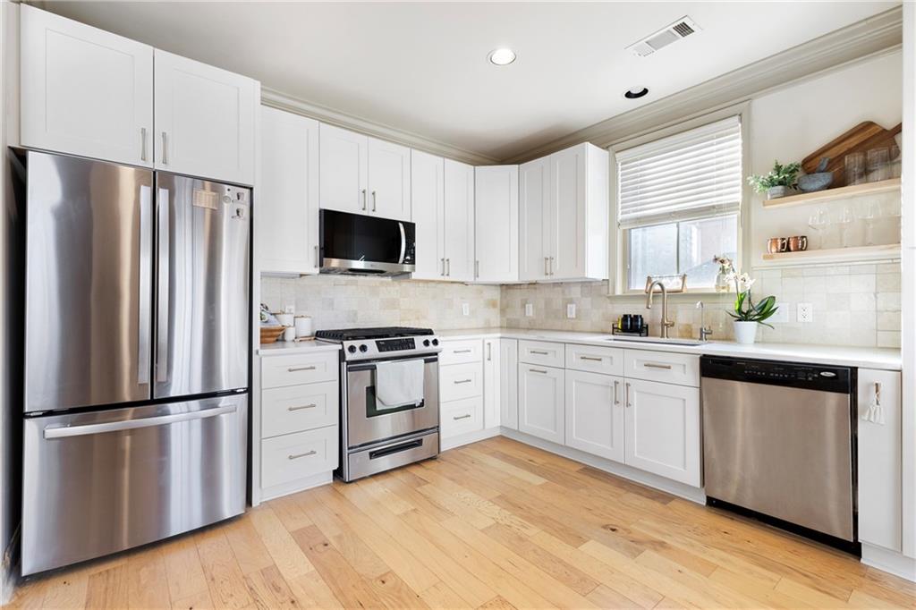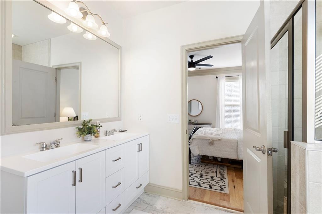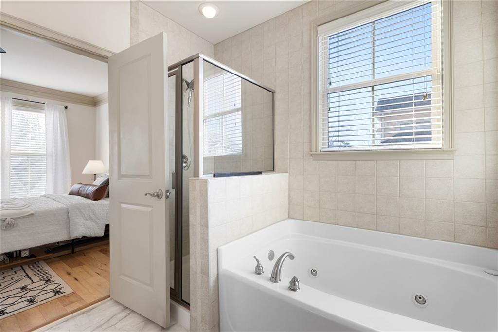 Welcome to this stunning end-unit 2-bedroom, 2.5-bathroom townhome in the highly sought-after gated community of Georgetown at Perimeter Walk. Offering the perfect blend of style, comfort, and convenience, this home is just steps away from Main Street, Politan Row, and Ashford Lane. Step inside to a bright, open-concept layout featuring a dramatic two-story great room and a newly renovated kitchen with soft-close cabinets, sleek quartz countertops, a modern tile backsplash, stainless steel appliances, and recessed lighting. Enjoy direct access to a private balcony with an egg swing — the perfect spot to start your morning coffee or unwind in the evening. The main level flows effortlessly from the kitchen to the dining area and great room, making it ideal for entertaining. You’ll also find a convenient laundry room, powder bath, and a secondary bedroom with a cozy fireplace and en suite bath featuring quartz countertops. Upstairs, the spacious master suite offers a true retreat with double vanities, granite countertops, a garden tub, a separate shower, and a large walk-in closet. A versatile loft area provides extra space for a home office, gym, or lounge. (Note: stairs are located at the entryway.) With high ceilings, beautiful hardwood floors, and a fresh modern vibe throughout, this home delivers luxury and livability. The gated community features fantastic amenities — including a pool, outdoor fireplace, and grilling area — plus ample guest parking and easy garage access. Located minutes from top-tier shopping, dining, and major highways (I-285, I-85, and GA-400), this home truly has it all. Don’t miss this opportunity Motivated seller, priced just right!