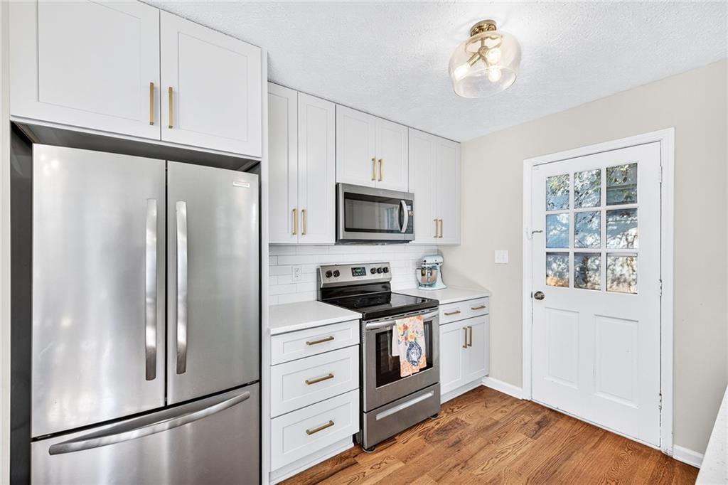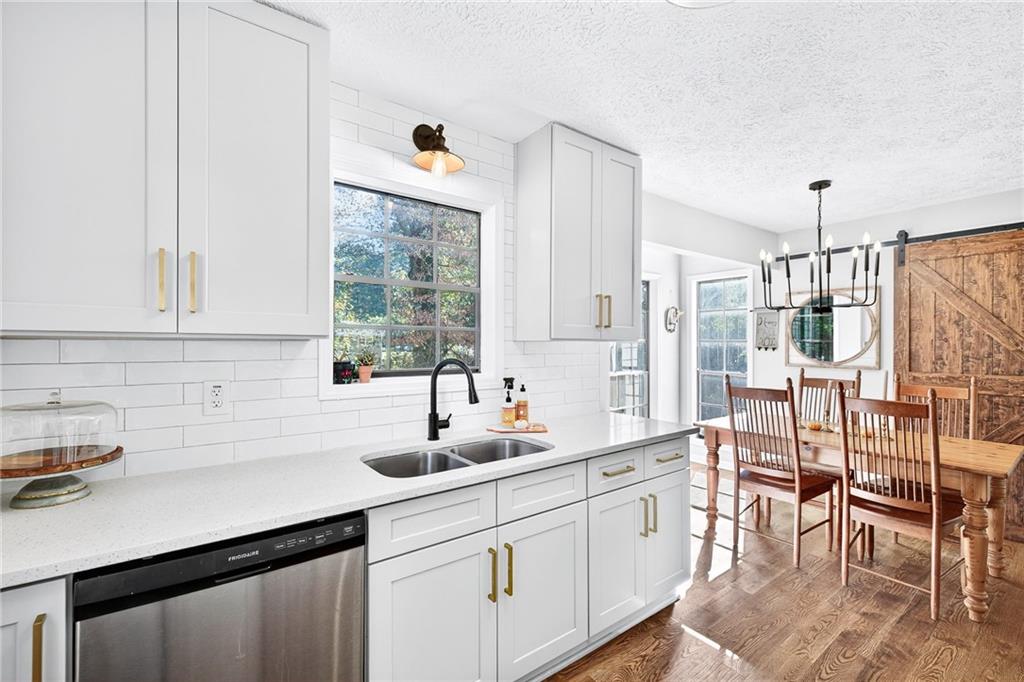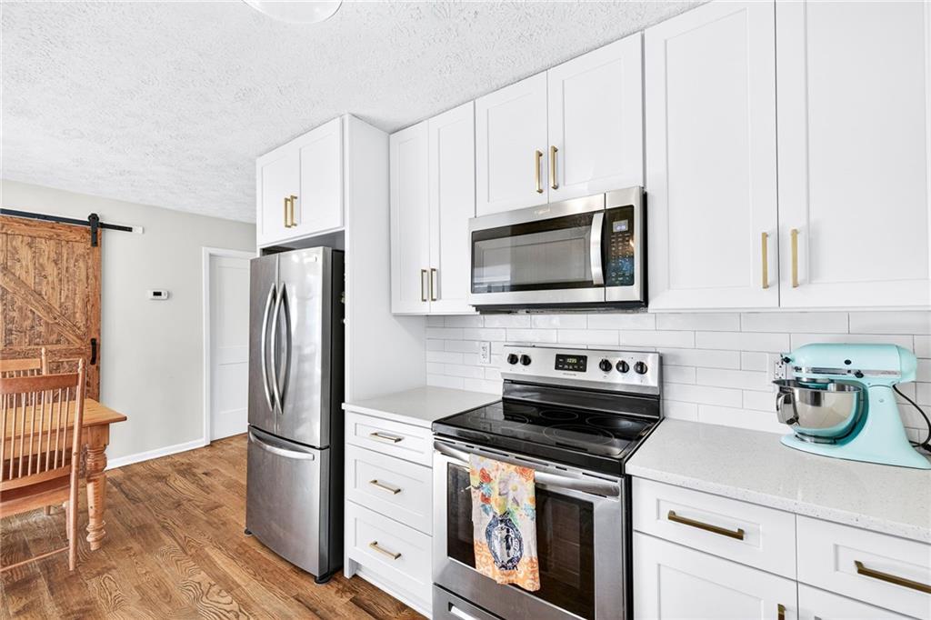Welcome home to a picture-perfect cottage overflowing with charm and modern updates in the heart of Smyrna! From the moment you arrive, you'll be captivated by the incredible curb appeal and the inviting, expansive rocking-chair front porch. Step inside to discover a freshly refreshed interior boasting new paint, gleaming hardwoods, and durable luxury vinyl flooring throughout. The spacious living room, centered around a cozy built-in fireplace, is the perfect place to relax and unwind. Continue into the stunningly updated kitchen, which features new white cabinetry, sleek countertops, a classic subway tile backsplash, and a full suite of stainless steel appliances. The adjacent dining area is highlighted by a stylish light fixture and a charming sliding barn door, adding a touch of modern farmhouse flair. This home offers the ultimate convenience with a primary bedroom and bathroom located on the main level, along with a dedicated laundry room. Parking is a breeze with the attached 2-car garage. This move-in-ready gem offers the perfect blend of style, comfort, and location. Don't miss your chance to call this incredible property home!