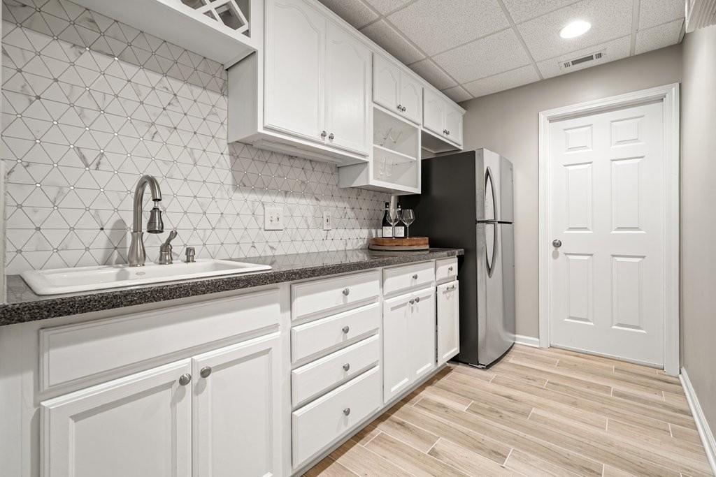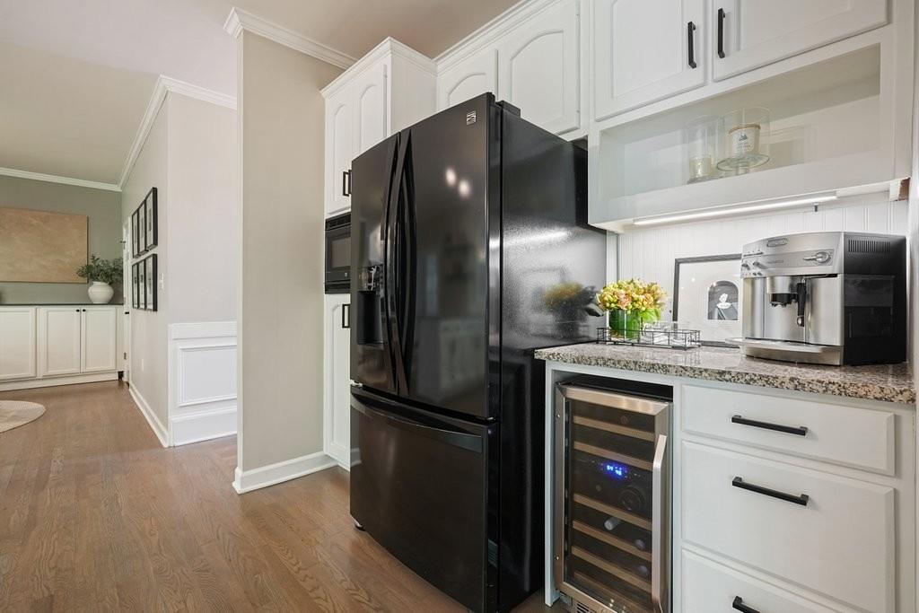 - KitchenBreakfast Bar, Cabinets White, Pantry Walk-In, Solid Surface Counters, View to Family Room, Wine Rack