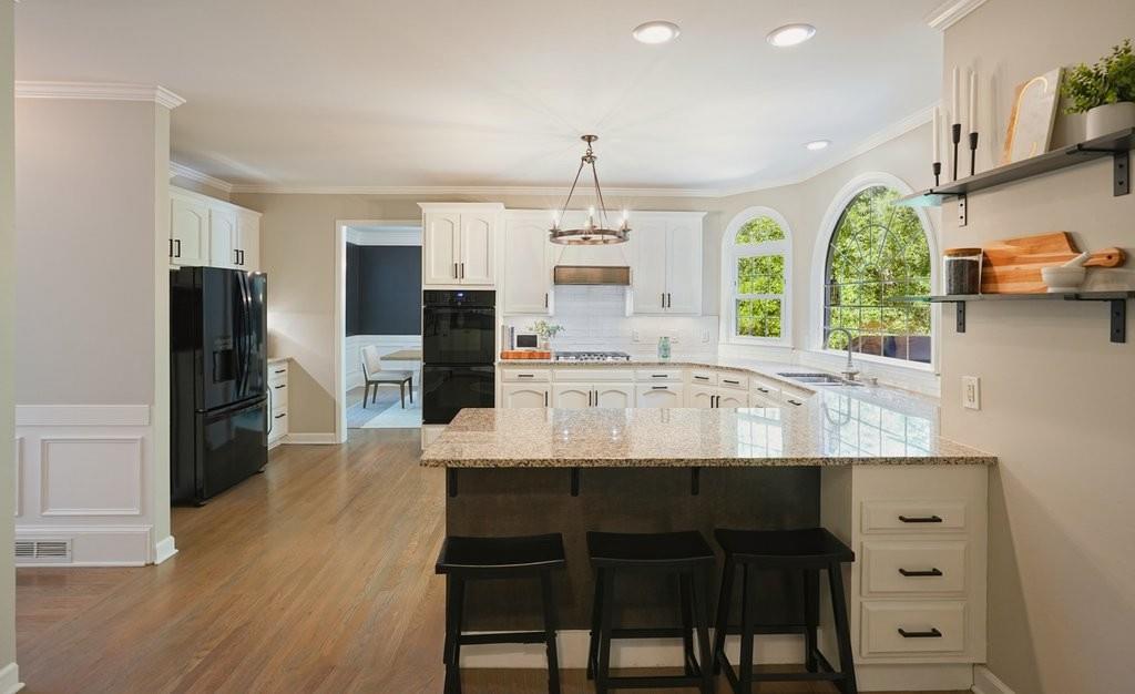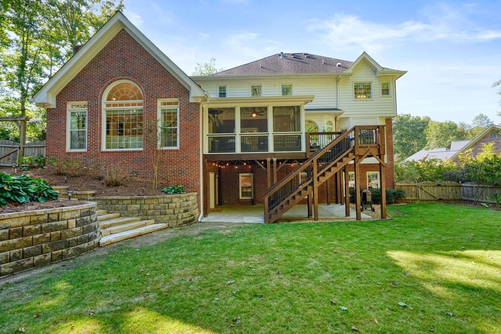 Welcome Home to 3965 Brookline Drive, situated in the prestigious enclave of Park Brooke, one of Alpharetta's most coveted communities. Ascend the elegantly curved brick stairs and be greeted by a soaring two-story foyer, where sunlight cascades through oversized, energy-efficient windows. Gleaming hardwood floors stretch seamlessly throughout the main level, guiding you past a home office, formal living and dining suite perfect for intimate soires or lavish gatherings. The heart of the home unfolds in the chef-inspired gourmet kitchen, blending elegance and practicality - showcasing bright white cabinets, smooth granite countertops, a gas range and expansive views of the back yard. Adjoining the kitchen, a comfortable breakfast nook flows effortlessly into the vaulted family room, where a striking painted brick fireplace serves as the focal point, framed by built-in shelving and direct access to the expansive screened-in porch. Ascend either staircase to discover three generously proportioned secondary bedrooms, each with walk-in closets and two full bathrooms. The primary suite, a private aerie on the upper level, exudes serenity with its soaking tub, separate shower, dual vanities, and a cavernous walk-in closet outfitted with custom shelving organizers. Beyond the interiors, this residence harmonizes with its surroundings through thoughtful expansions, including a finished terrace level that houses a fifth bedroom, full bath, living space with additional fireplace, recreation area, workshop and ample storage, all opening to a covered patio that overlooks the lush, fenced backyard complete with a roaring fire pit & bocce court. Recent enhancements, from accent walls & fresh interior paint to state-of-the-art HVAC upstairs ensure effortless comfort year-round. Park Brooke's resort-inspired lifestyle enhance everyday moments: lounge poolside at the community oasis, hone your skills on the lighted tennis, pickleball and basketball courts, or stroll the private greenway trails connecting to nearby parks. Positioned mere minutes from GA-400, 3965 Brookline Drive grants swift access to Alpharetta's crown jewels The Avalon for upscale shopping and dining, the charm of downtown, and top-rated Fulton County schools including Alpharetta High. Here, luxury meets legacy in one of North Atlanta's most coveted communities. Schedule your private viewing today and claim your slice of Alpharetta sophistication.