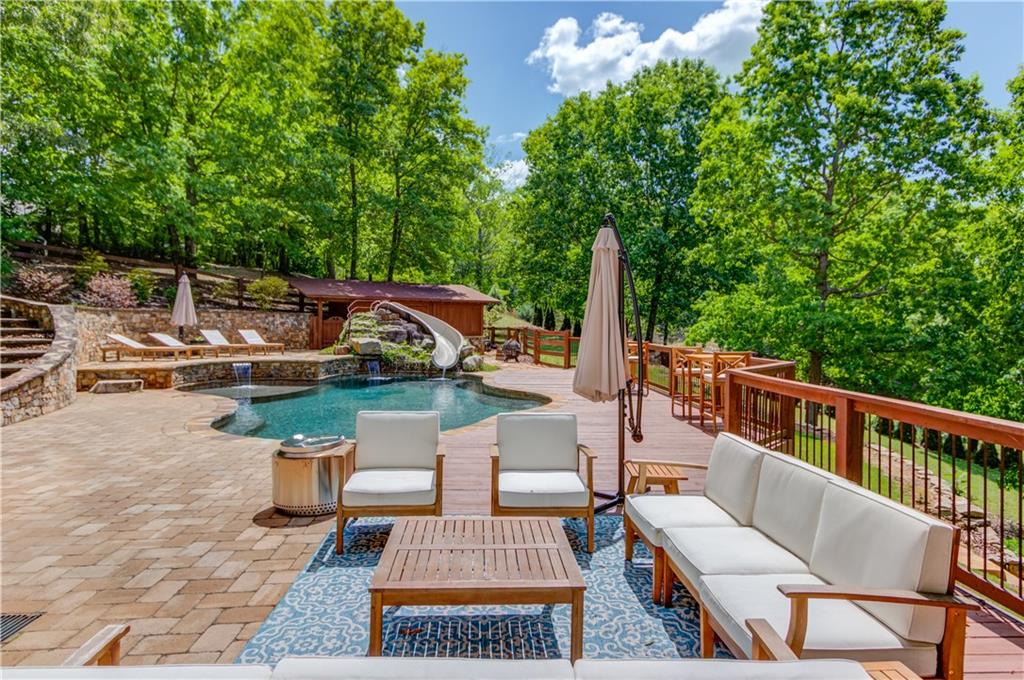 This stunning stucco home with brick accents offers an exceptional blend of comfort, space, and entertainment in a desirable Cumming location. Enjoy an open-concept layout featuring a gourmet-style kitchen that overlooks the family room, complete with beautiful flooring, fireplace, and elegant ceiling details. The owner’s suite provides a spa-like bathroom and generous closet space, with additional bedrooms offering private or convenient bath access. A finished basement adds versatility with plenty of room for recreation, media, or multi-generational living. Step outside to your private outdoor oasis with a sparkling pool, perfect for relaxing or hosting. The large lot provides privacy and a park-like setting, while the spacious garage offers ample parking and storage. This home delivers luxury-style living with the convenience of a rental—ideal for those seeking space, style, and a great location.