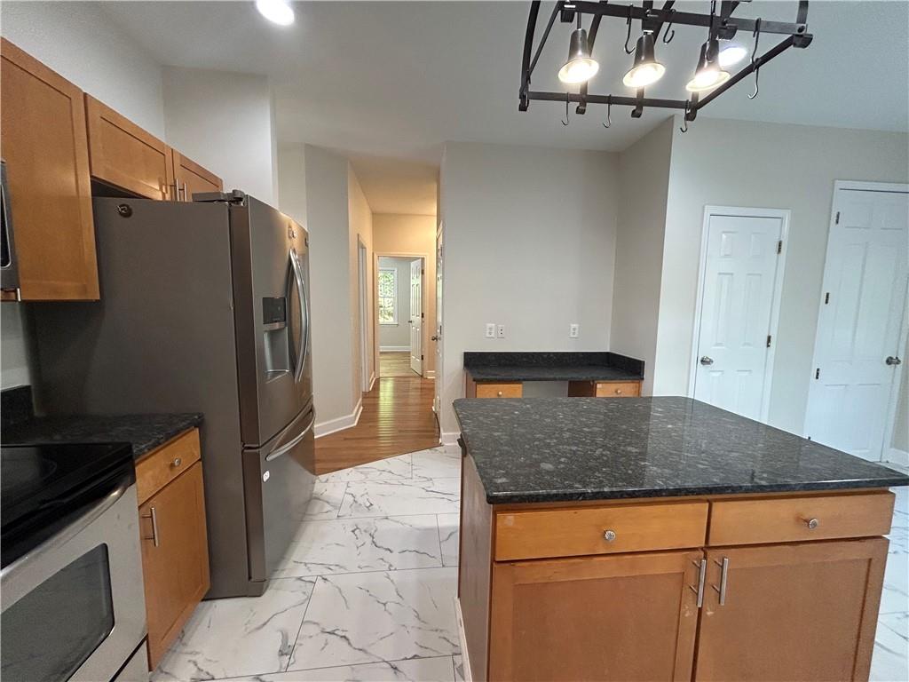 - KitchenCabinets Stain, Eat-in Kitchen, Kitchen Island, Pantry, Stone Counters