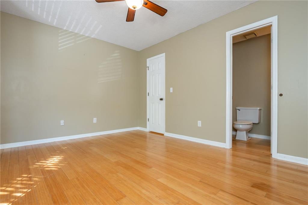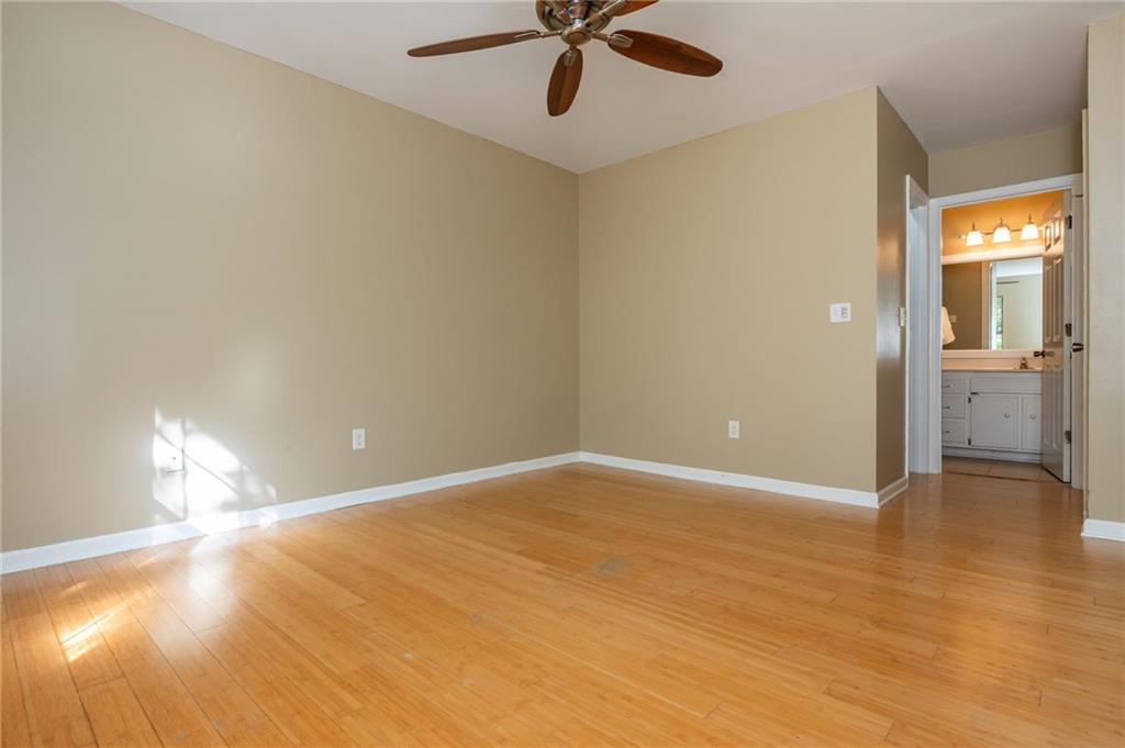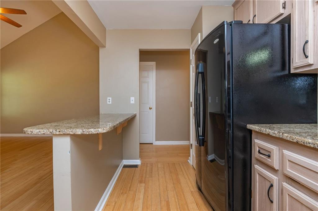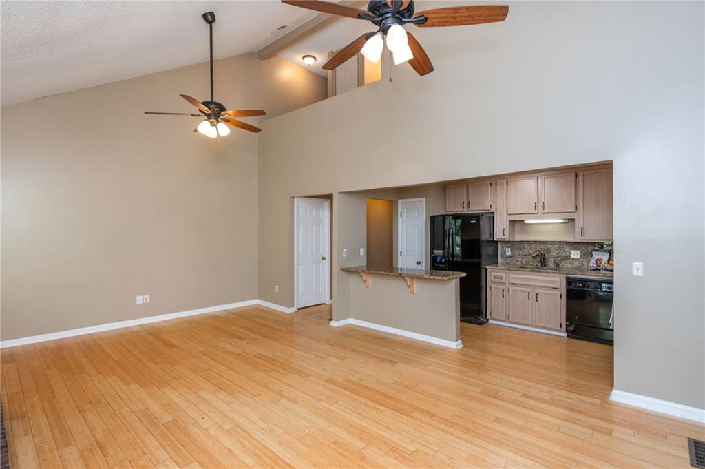 Welcome Home - terrific opportunity for first time home buyer, roommates, or landlord. This Town Home is conveniently located to 75, Express Lanes, KSU, Shopping and more! Master on Main with 2 additional Bedrooms and a shared Bathroom upstairs and Hardwoods throughout, up and down. Kitchen has Granite Counters, Gas Range and Breakfast Island and open to Family Room and Dining Area. Open Family Room and Dining Area has Wood Burning Fireplace, Vaulted Ceilings and access to a generous sized Back Deck. Enjoy the Private Backyard views from the deck. So much potential in the huge Unfinished Basement - perfect for storage, workout room or finish off for additional living space. Access backyard with raised bed through the basement. Fee Simple, No HOA Dues, your own yard, 2 designated parking spaces.
