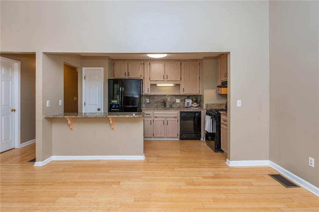 - KitchenBreakfast Bar, Cabinets Other, Stone Counters, View to Family Room