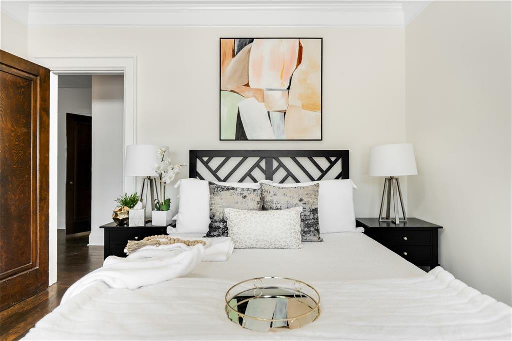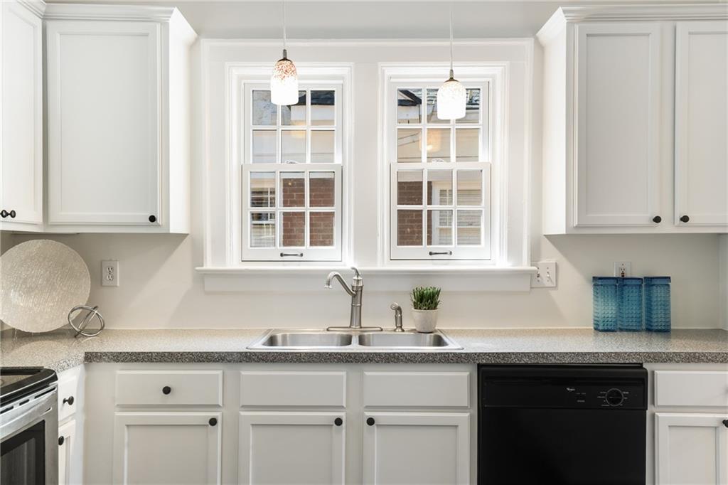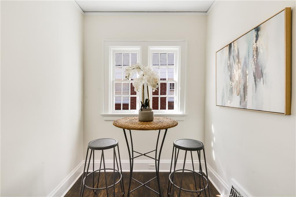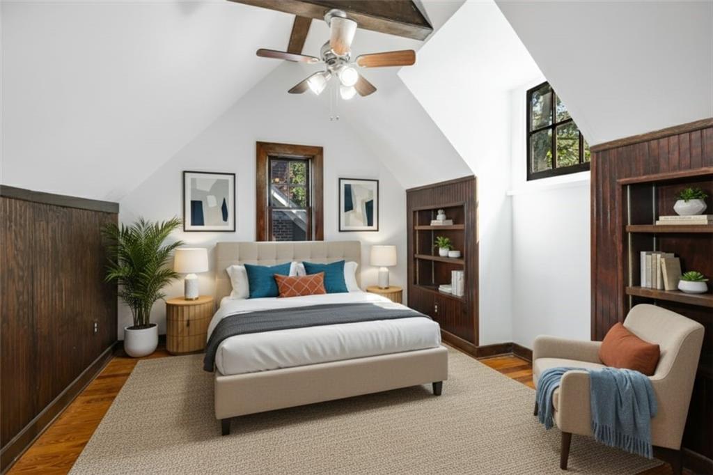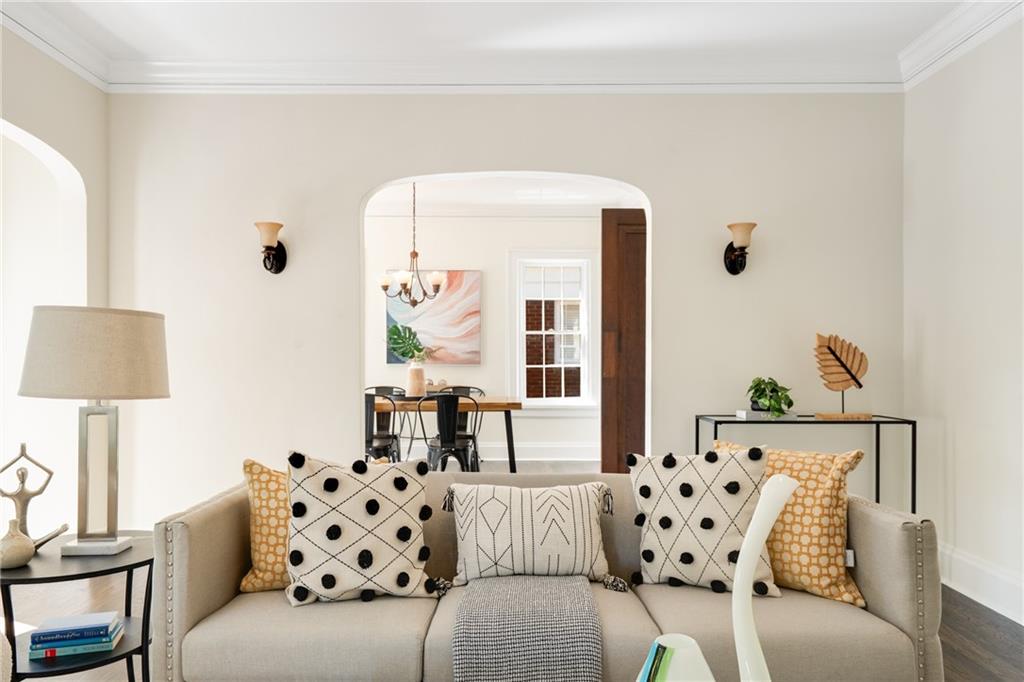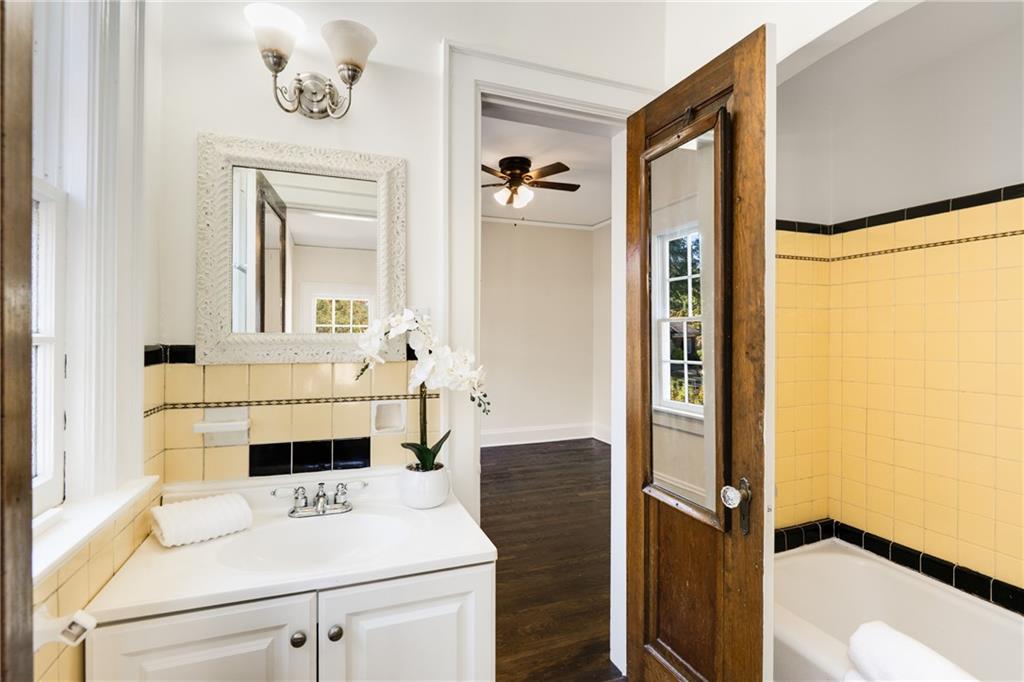 This Beltline-adjacent home, with architectural details and thoughtful updates, creates a rare blend of historic character and modern livability. From the moment you arrive, the graceful arches of the open-air corner porch invite you in and are echoed by arched doorways that flow from room to room inside. The interior showcases original hardwood floors throughout the main living areas and bedrooms, while large windows fill each space with natural light. The living room, complete with a cozy fireplace and access to the porch, offers the perfect spot to relax or entertain. Through the formal dining room, walk along the butler’s pantry with original built-ins (coffee station, anyone?) to the kitchen that combines vintage charm with modern convenience, featuring granite countertops, stainless steel appliances, and a nearby laundry area. Three main-level bedrooms provide flexibility, with two sharing a connecting bath for added convenience. Both bathrooms have been updated while maintaining their period style. Upstairs, you’ll find a spacious fourth bedroom or bonus room — perfect for a home office, guest space, or creative studio. A full-height basement offers excellent storage or potential for future expansion. And the new roof and water heater will give you peace of mind! Outside, enjoy a fenced backyard, detached two-car garage, and a driveway with plenty of parking. With a Beltline entrance, Dill Avenue Park, and a library just down the street and quick access to I-85, you’ll love being minutes from the Beltline, trails, parks, and the best of Atlanta’s vibrant energy. The home is physically staged and upstairs is virtually staged.