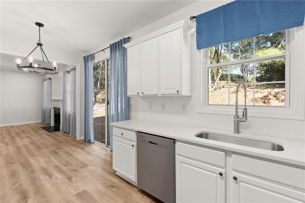 - KitchenCabinets White, Eat-in Kitchen, Pantry, View to Family Room