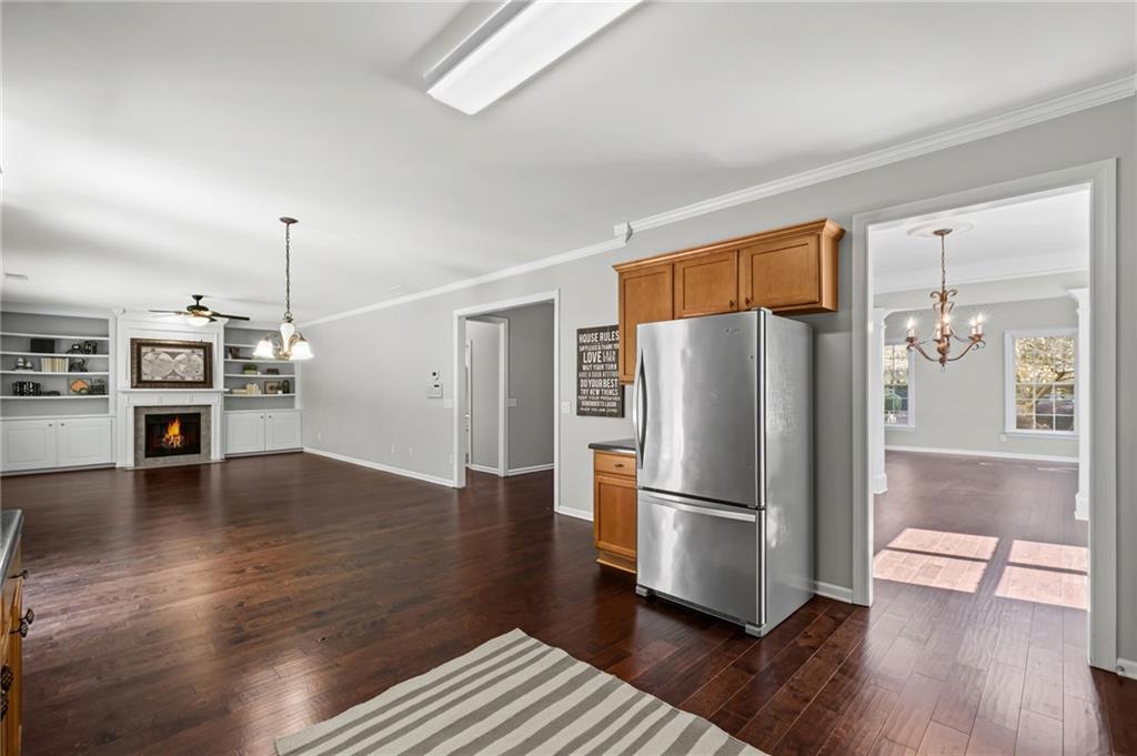 - KitchenCabinets Stain, Eat-in Kitchen, Pantry, Solid Surface Counters, View to Family Room