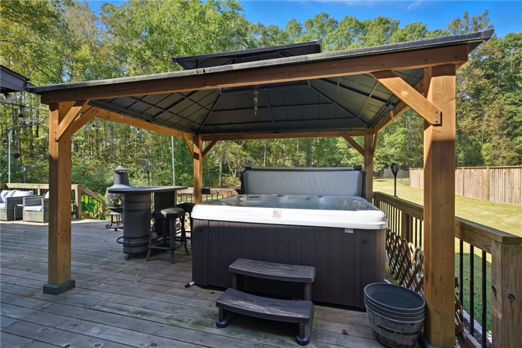 Set back from the street with a long driveway and welcoming covered front porch, this home blends everyday comfort with standout spaces for gathering. At the heart of the main level is a chef’s dream kitchen anchored by a large island and open sightlines to the family room—complete with a cozy fireplace. A separate dining room with a coffered ceiling elevates weeknights and holidays alike. The main-floor bedroom and full bath provide flexible use for guests, work, or multigenerational living. Upstairs, the oversized primary bedroom is a true retreat, leading to a spa-inspired bath with an oversized tiled shower and double vanity, plus an amazing walk-in closet. Two additional secondary bedrooms and a full hall bath round out the upper level. Outdoor living takes center stage in the flat, level, large backyard bordered by a creek—a private setting you’ll love. Enjoy year-round entertaining on the covered porch with fireplace, unwind in the covered hot-tub area, or host a crowd on the large deck. Thoughtful design, generous rooms, and multiple indoor-outdoor zones make this home easy to live in and effortless to love.