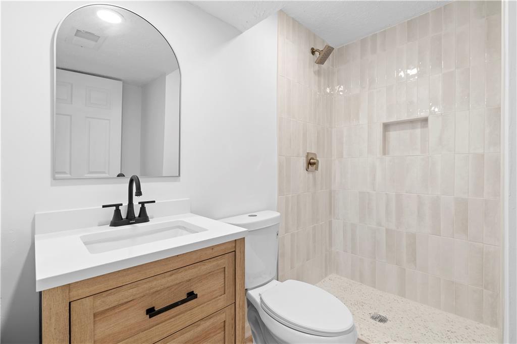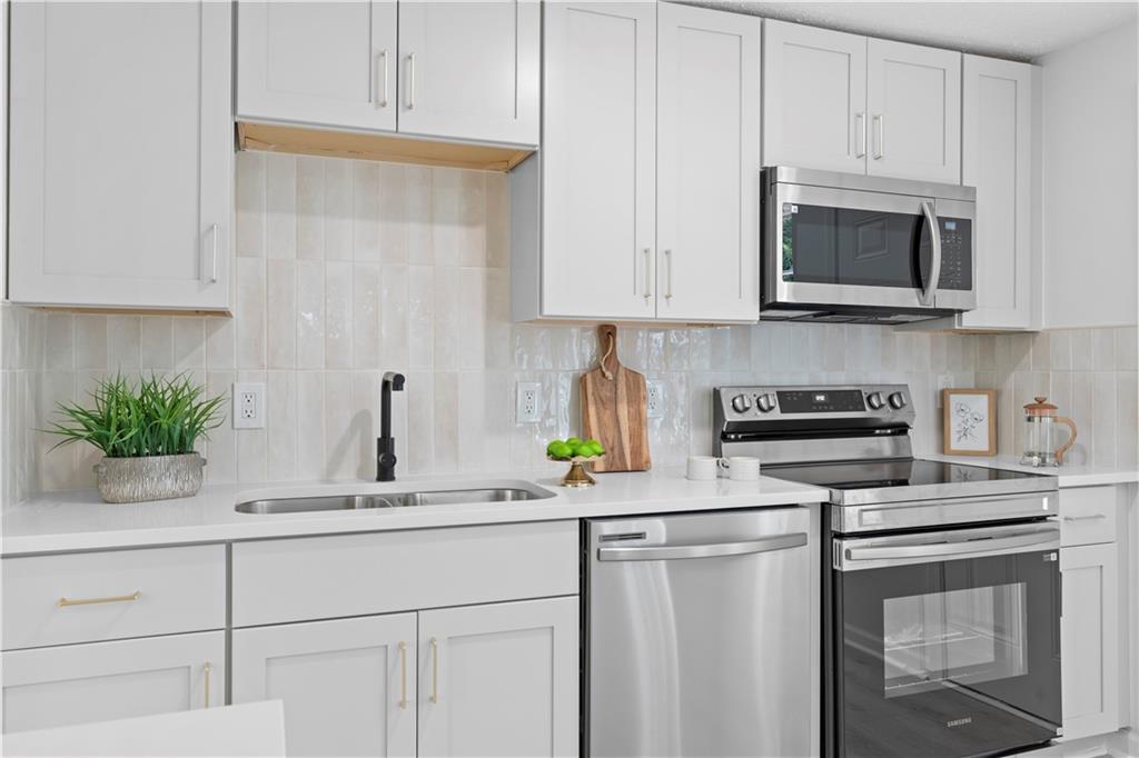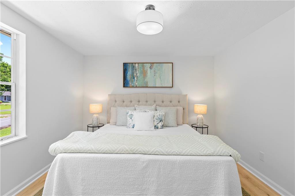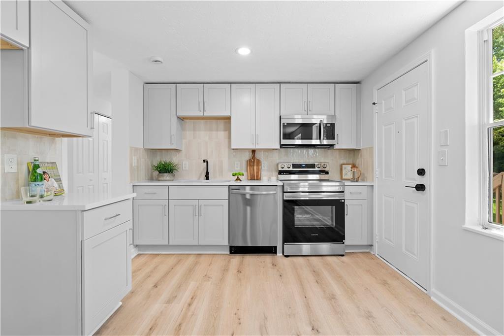 Beautifully updated multi-level home in Decatur. This home offers a lot of space with 4 beds and 2 baths. The kitchen features soft grey cabinets, stainless steel appliances, stone countertops, and a stylish tiled backsplash. Both bathrooms have been fully renovated with modern showers, new vanities, fresh flooring, and matte black hardware for a sleek, cohesive look. Outside, enjoy a spacious 2-car garage, a back deck, and a fully fenced yard—great for pets, kids, or weekend gatherings.