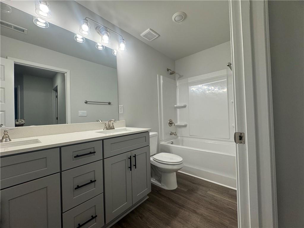 DON'T SPEND YOUR STASH! WE HAVE 10K FLEX CASH! Amazing Builder Incentive for a limited time. New Construction Home located in the picturesque foothills of the Northeast Georgia Mountains, The Fields of Walnut Creek offers the perfect blend of Southern charm and modern convenience. This vibrant community invites you to enjoy the best of farm-to-table dining, acclaimed wineries, and a variety of outdoor adventures in the tri-state area of Georgia, North Carolina, and South Carolina. The 2307 2-story Plan provides thoughtful design and stylish details. The kitchen is a standout with designer-painted Dove Grey cabinetry, granite countertops, a tile backsplash and pendant lighting over the island. The premium lot includes a two car side entry garage, an extended 16 x14 covered Lanai with a ceiling fan, electric fireplace,4-zone irrigation system and a 2ft Brick Water Table on front of home. The owner's suite features a spa-inspired 5ft Sterling Shower with a glass door, double vanities, designer lighting and spacious walk-in closet. Additional highlights include luxury vinyl plank flooring in key areas. Bedroom living spaces are carpeted for comfort. Your home also comes with peace of mind: a 1-year builder's warranty, a 2-year systems warranty, a 10-year structural warranty, and two pre-closing walk-throughs. Plus, enjoy the convenience of a Smart Home Package to keep you connected and secure. Additional preferred Lender incentives available. Don’t miss your chance on a beautiful new home in The Fields of Walnut Creek with a budget friendly HOA. The Fields of Walnut Creek is convenient to dining, shopping and easy access to I-985 and I-85. Check out our beautiful, decorated model home for current design trends. ***Please Note Stock Photos are used for illustration purposes only and may not represent actual home. *** Home is 100% Complete.