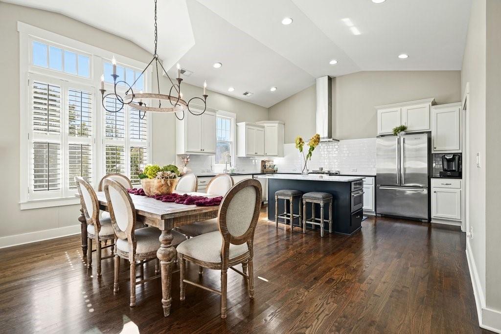Experience the luxury of living in the heart of Downtown Woodstock in this exquisite John Wieland custom home, perfectly situated on a corner lot in one of the area’s most coveted communities—just steps from charming boutiques, coffee shops, top-rated restaurants, live music, and scenic walking trails. Built in 2012 and meticulously maintained, this single-family residence spans approximately 2,380 square feet of refined living space with timeless finishes, high ceilings, and a clean, elegant palette ready for your personal touch. Step onto the inviting front porch, a picture-perfect setting for morning coffee or evening gatherings. Inside, you’re greeted by a warm, open foyer leading to a private office and a guest suite with an en suite bath on the main level. The home also features a residential elevator, offering effortless access between levels. The upper level is a stunning open-concept retreat featuring a designer kitchen with white cabinetry, stone countertops, and a seamless flow into the dining area and light-filled living room with a cozy fireplace. French doors open to a covered deck, ideal for al fresco dining or enjoying peaceful sunset views. The primary suite impresses with cathedral ceilings, a spa-inspired bath featuring dual vanities, a custom walk-in tub, a separate tiled shower, and a spacious walk-in closet. A powder room and laundry room complete this thoughtfully designed floor. Additional highlights include dark hardwood floors, fresh interior and exterior paint, abundant storage, and a two-car garage with a level, fenced side yard—perfect for pets, gardening, or quiet relaxation. Located directly across from the community pool, this home offers resort-style living in an unparalleled location. Downtown Woodstock living doesn’t get better than this—luxury, comfort, and connection all in one.