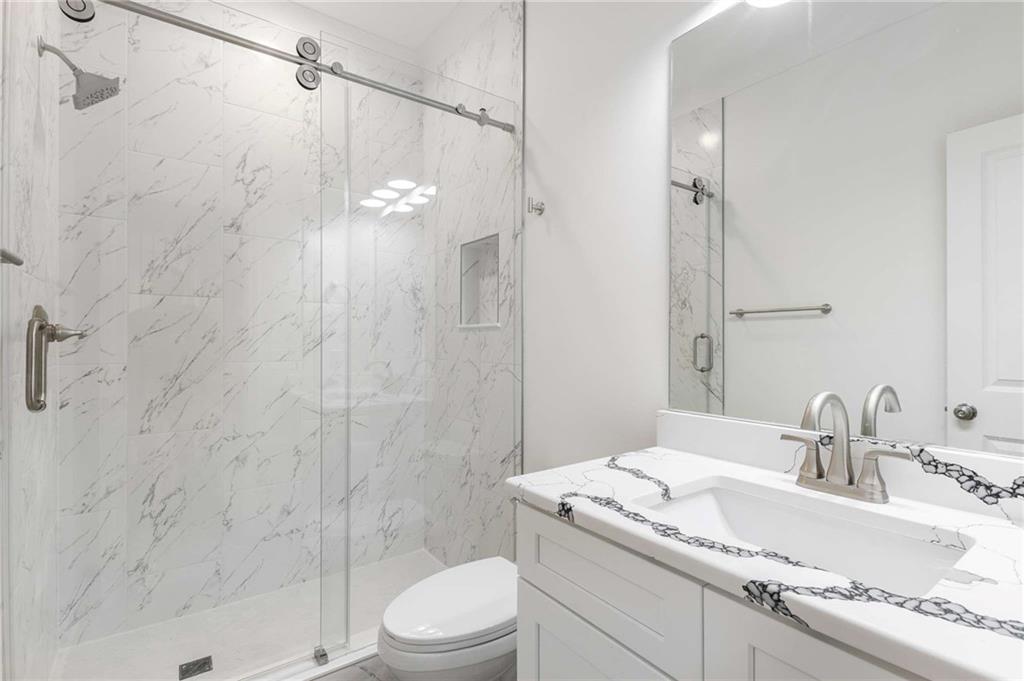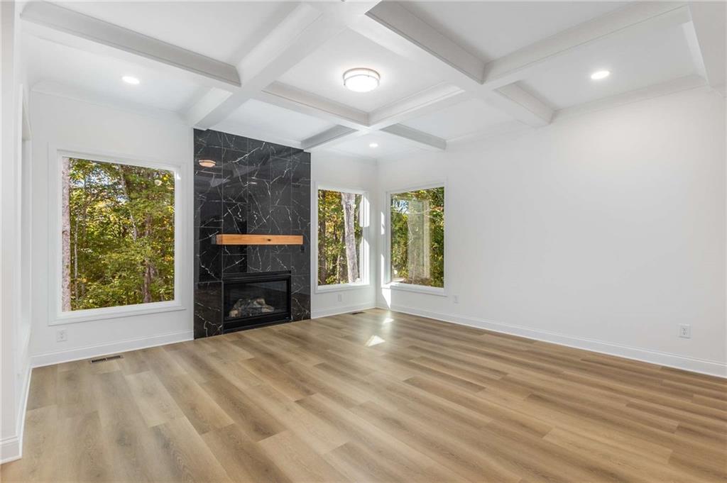 New luxury home in Forsyth County! Stunning 5BR/4BA with 3,500 SF of refined living space plus a 2,100 SF fully insulated basement with 11-ft ceilings and large daylight windows—ready for your dream expansion. Designed with double staircases, a formal dining room, and a chef’s kitchen featuring quartz countertops, Samsung BESPOKE appliances, and a huge walk-in pantry. Kitchen and all baths offer quartz surfaces with marble wall accents in showers. The soaring great room showcases a dramatic black marble fireplace that extends from floor to ceiling—the true heart of the home—open to the kitchen for seamless entertaining. Upstairs includes a spacious loft and a spa-style primary suite with soaking tub and frameless shower. Built with high-end materials, waterproof LVP flooring, covered deck, space for a pool, fenced backyard, and a creek with a scenic wooded view. Located in a desirable swim/tennis community near parks and shopping.