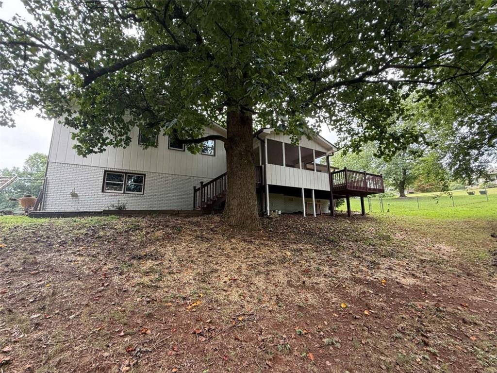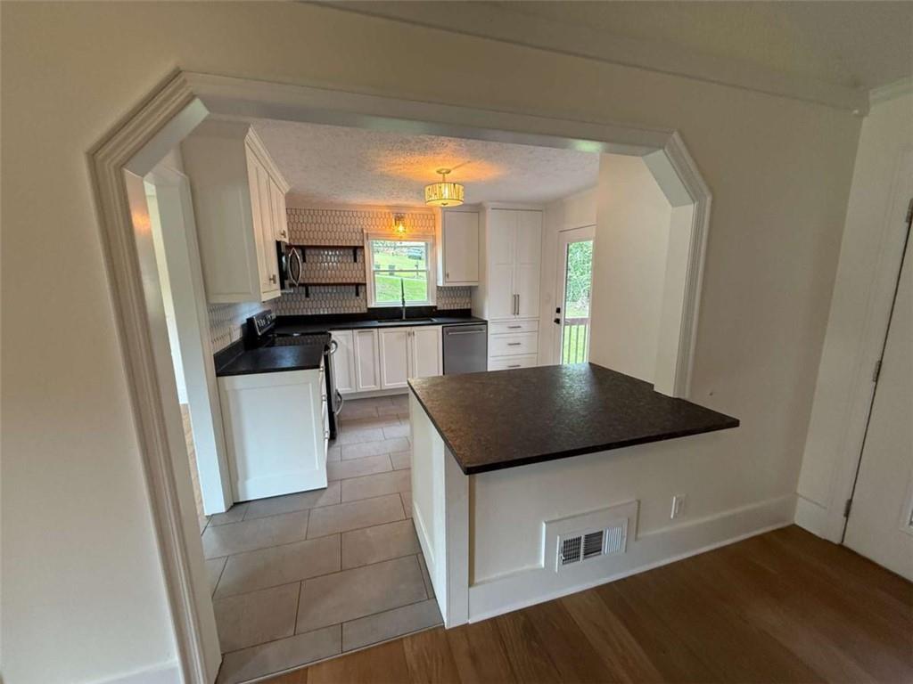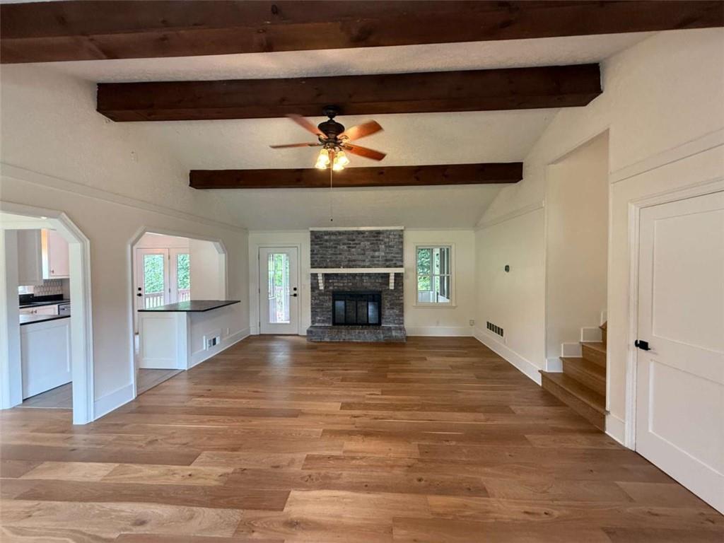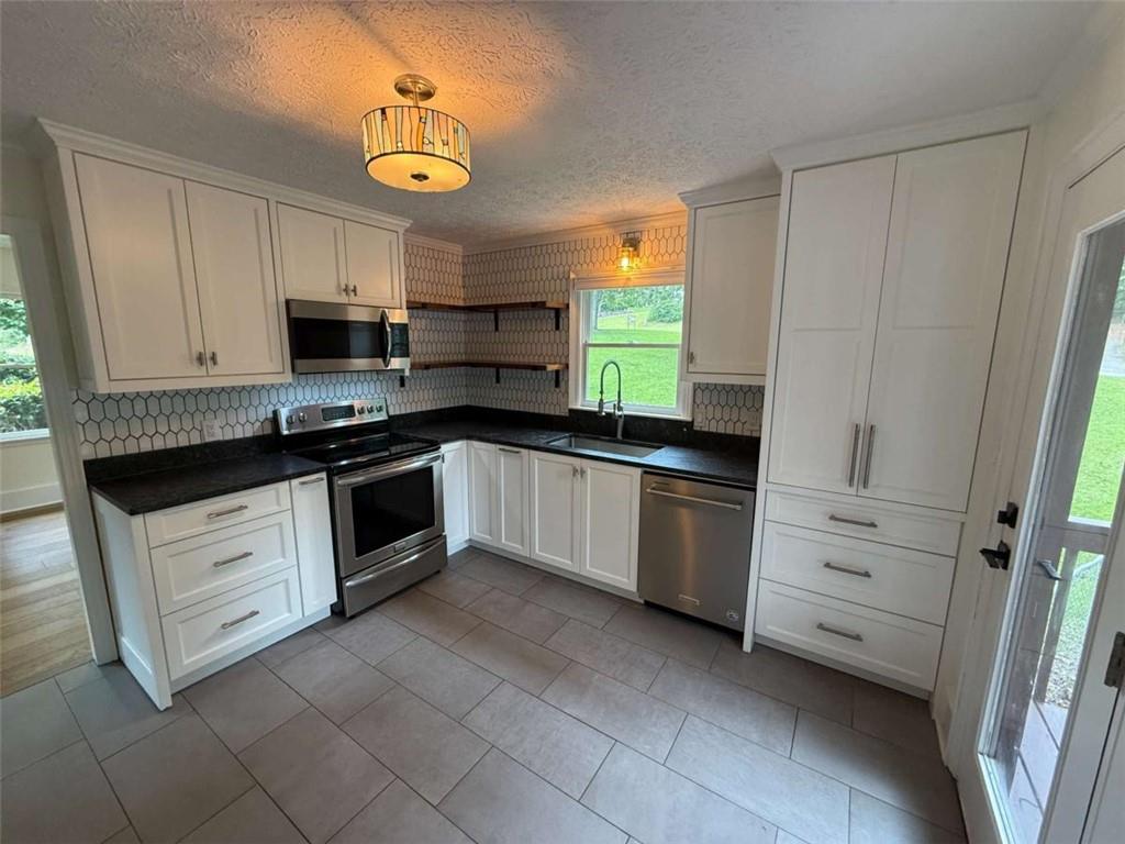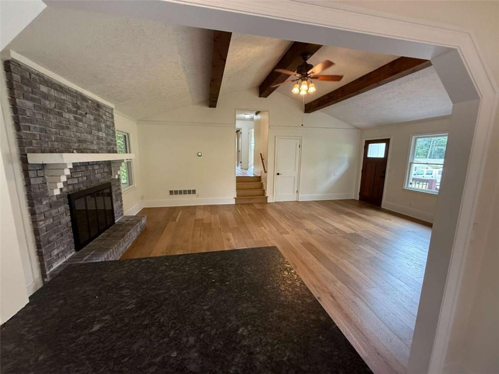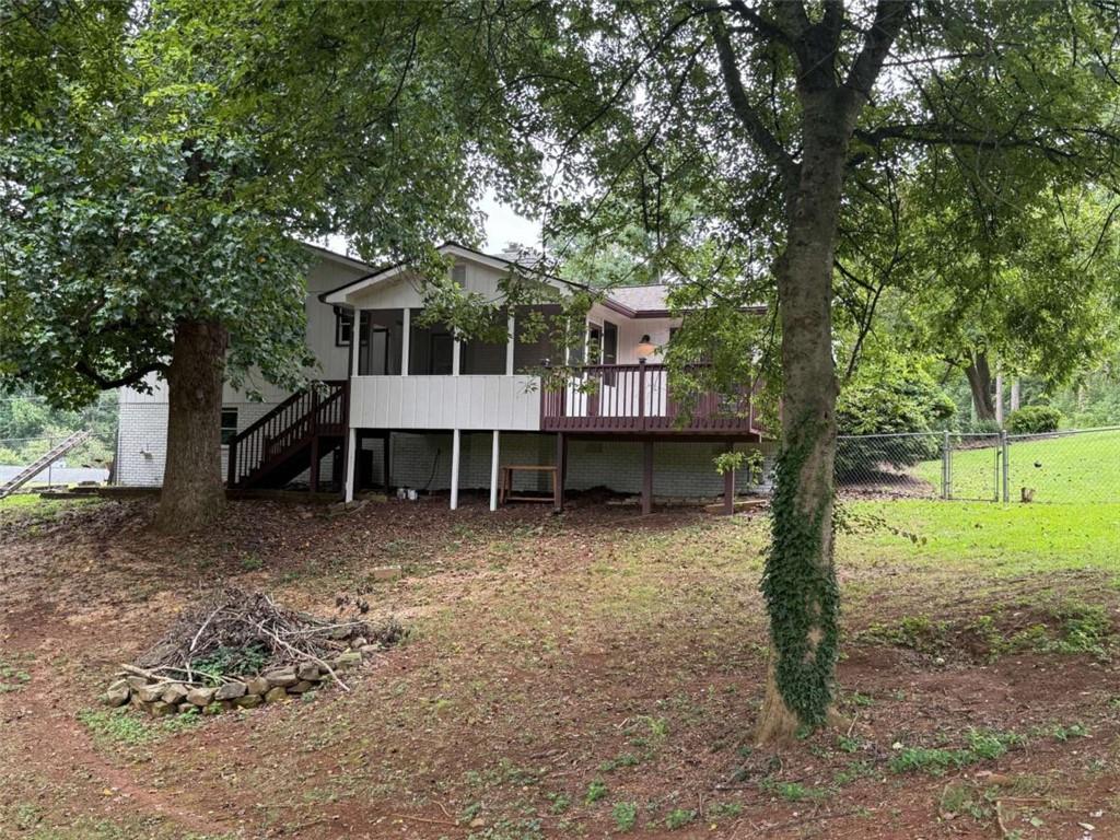 Beautifully updated home on a large private lot. Open plan with a vaulted great room featuring wood beams, a ceiling fan, and a fireplace. Recently renovated farmhouse-style kitchen w/ custom cabinetry, tile backsplash, solid surface counters, and stainless steel appliances. Large private fenced lot. Screened-in porch and deck overlook the wooded backyard.