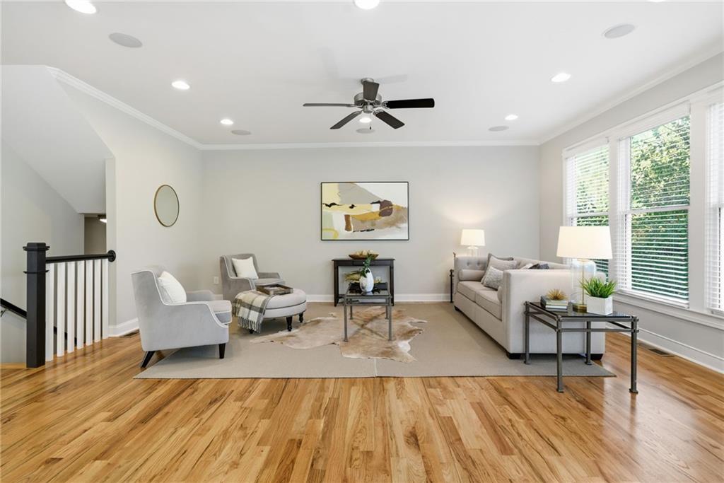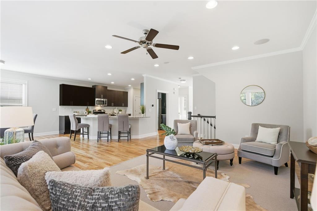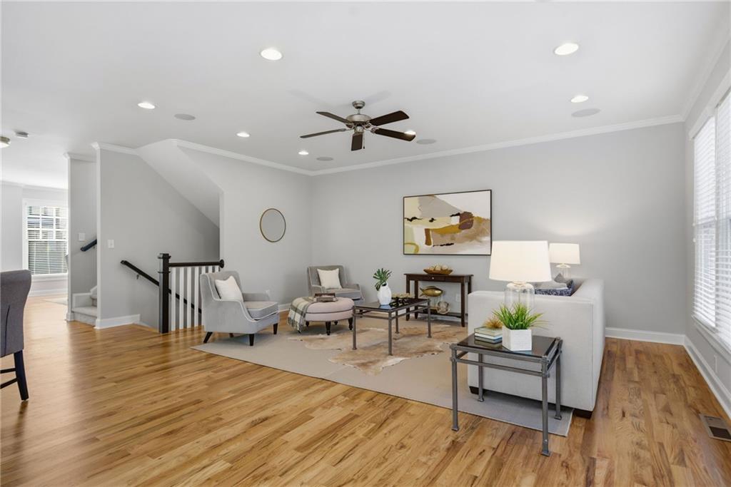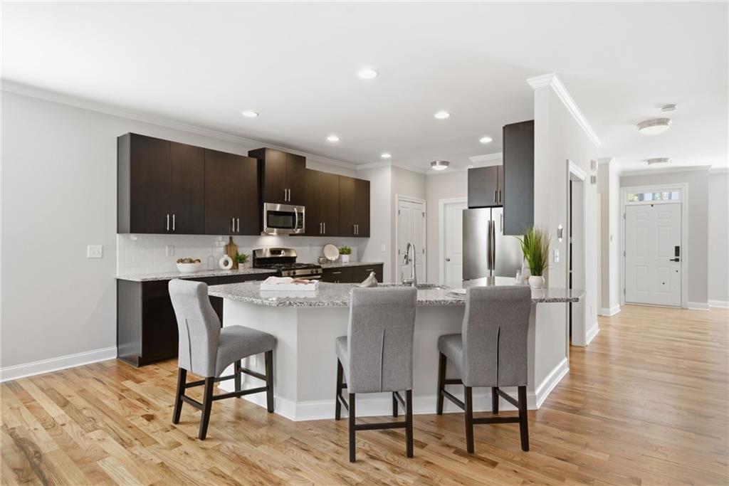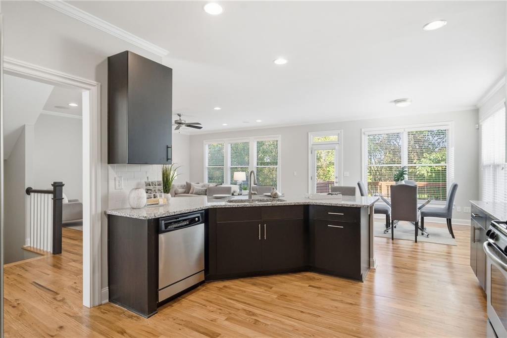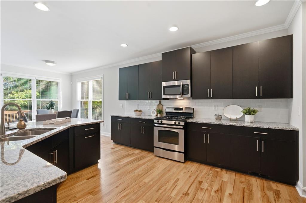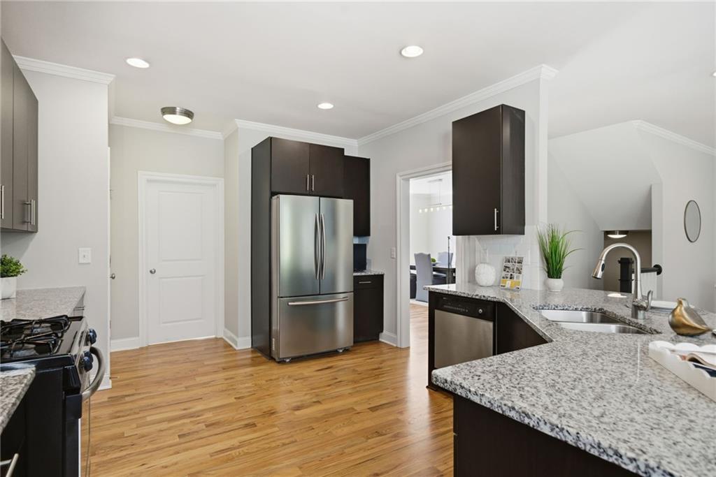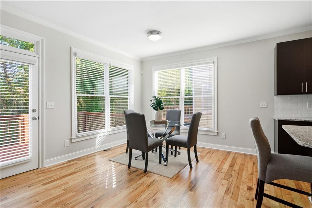 Freshly Updated & Move-In Ready in DuPont Commons…Welcome to 1433 Dupont Commons Circle. This gorgeous home will wow you! It shows like a model, prepare to be impressed. One of the largest floor plans, it features 5 BR’s and 3 full baths— no detail in the stunning renovation has been overlooked. In fact, the view of the Atlanta skyline from one BR(or flex room) on the top level is exhilarating. Just wait and see! Step into style and comfort with this beautifully updated”turn key” home in one of Atlanta’s most sought-after communities. This well maintained residence offers the perfect balance of classic charm and modern upgrades within minutes of West Midtown’s top dining, shopping, and entertainment. From the moment you arrive, you’ll notice the freshly painted exterior and trim, giving the home a crisp, modern curb appeal. The back deck has been newly restained, perfect for outdoor entertaining or quiet evenings under the stars. Inside, every detail has been thoughtfully crafted to create a clean, move-in-ready feel. Brand new carpet brings warmth and comfort to the upstairs, while the main level’s hardwood floors have been professionally refinished to a rich, like-new LUSTER! Every room feels fresh and inviting, with a seamless blend of charm and functionality. Plus, the entire inside has been professionally painted the perfect neutral color for you to enjoy. So much natural light and an open floor plan make this home so very special. You will love the gourmet kitchen with SS appliances, granite counters featuring a large island, which flows effortlessly into the dining room and huge family room— great open space for all your entertaining. Upstairs, you have two spacious secondary BR’s with full bath in the hall and a huge primary with two large walk-in closets, one of which has a custom shelving system which you will love! The oversized primary is both spacious and light-filled, and the ensuite bath has dual vanities and a spa-like soaking tub and full shower. But wait, there is MORE— one more level up featuring two more BR’s and a full bath. Yes, this is where you find the drop dead gorgeous view of the Atlanta Skyline. So, do you need 5 Br’s well in case you don’t, you can repurpose one or more for your individual needs, no problem at all. The Terrace level features a HUGE garage which includes several shelving units for all your storage needs and a large unfinished space currently used as a workout area but can be finished and plumbed for a bathroom if you wish. Located in the vibrant DuPont Commons neighborhood, residents enjoy tree-lined streets, friendly sidewalks, and resort-style amenities—all just minutes from the best of West Midtown. The amenities in the community are off the charts—pool, clubhouse, fitness center, dog park, Koi pond, waterfalls, playground, pavilions, and multiple parks! Plus minutes to I-75, The Works, Top Golf, Westside Provisions District, Bolton Academy and downtown Atlanta—this can be all yours ! Don’t wait, don’t hesitate— this incredible opportunity to live a country club like experience will not last long! All new. All refreshed. All ready for you.