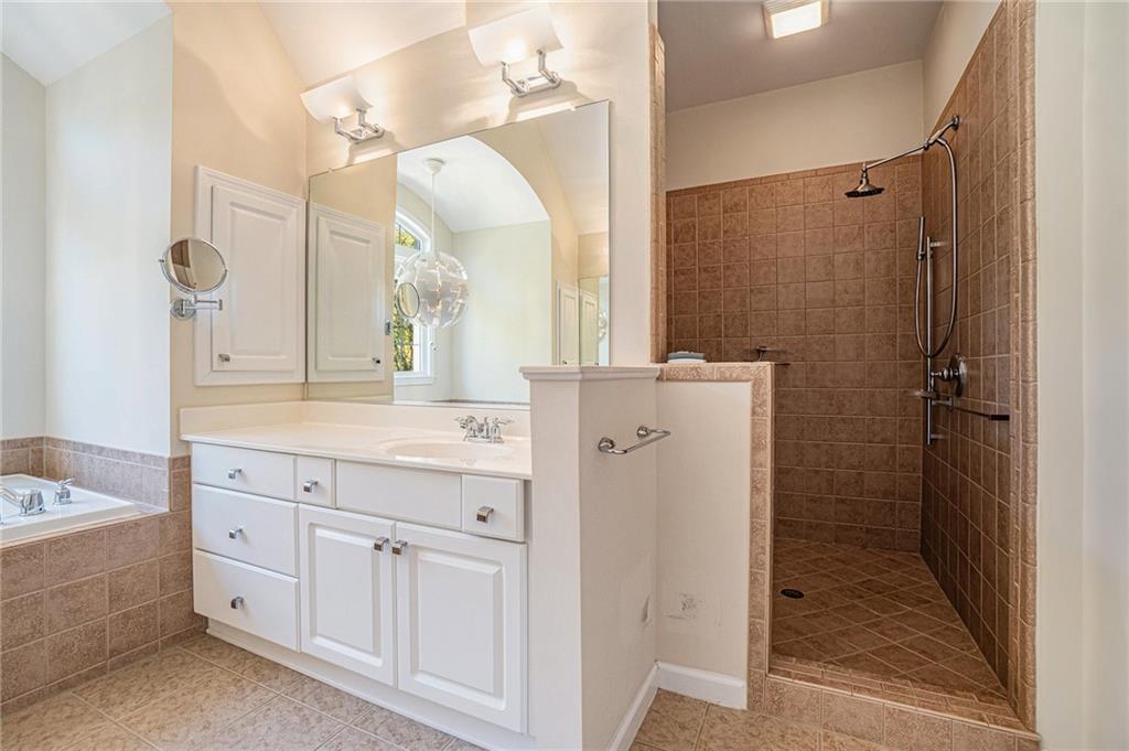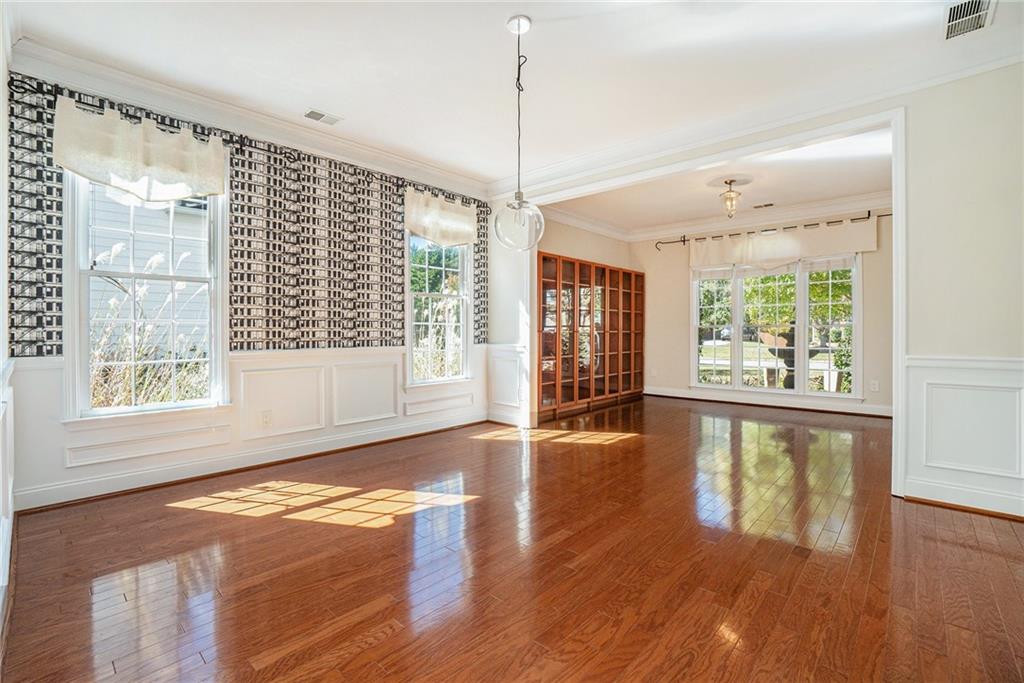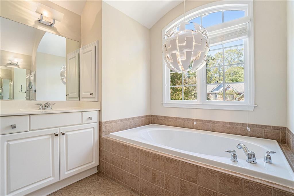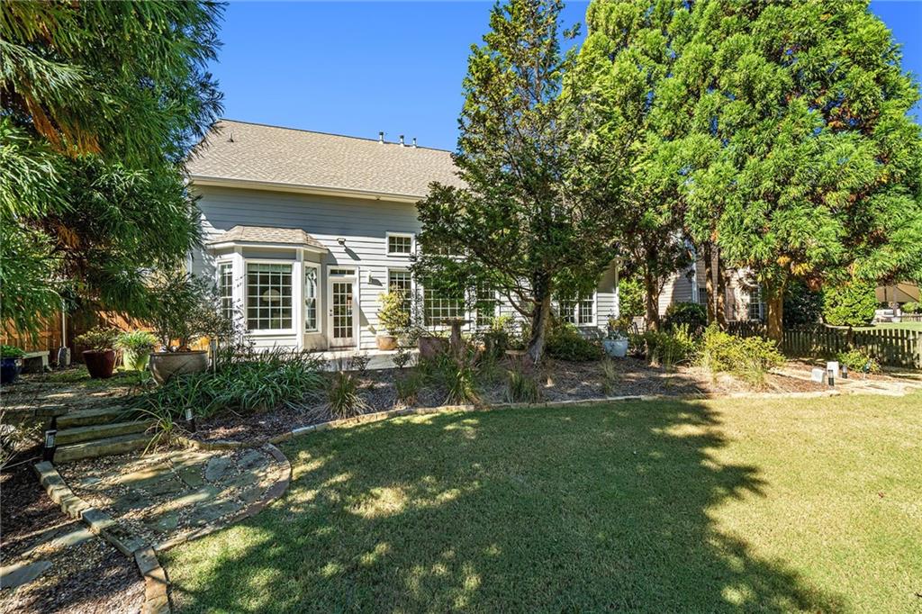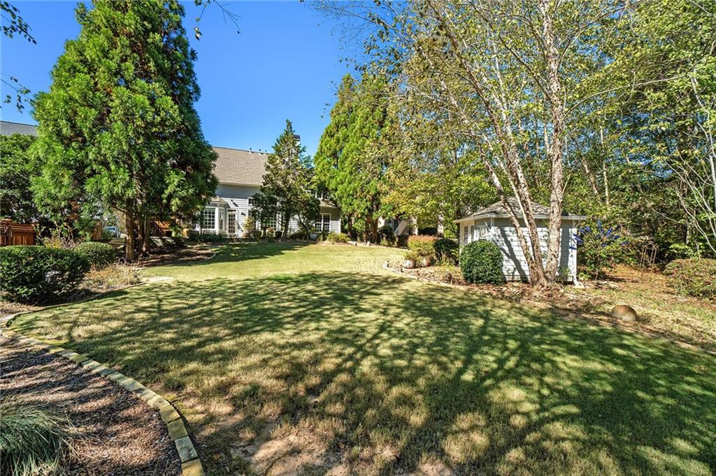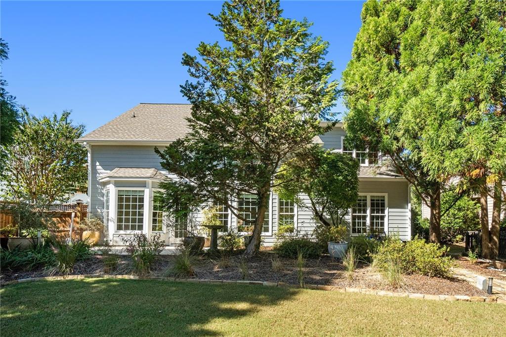 Beautiful and well-maintained traditional in sought-after Lakefield Manor! Nestled on nearly a half-acre lot, this elegant home offers exceptional space and charm. The main level features hardwood floors throughout, a stunning two-story foyer, and a soaring two-story great room. The formal living room flows seamlessly into the formal dining room, perfect for entertaining. A versatile main-level bedroom, currently designed as a home office, is accompanied by a full bath. The bright eat-in kitchen opens to the family room and overlooks a stone patio and an expansive, garden-friendly backyard. The beautifully landscaped garden and charming shed were even featured in the Atlanta Journal-Constitution! Upstairs, the spacious primary suite includes a sitting area, extra closet space, and a large walk-in closet. The ensuite bathroom offers separate his-and-hers vanities, a relaxing garden tub, and an oversized shower. Two additional bedrooms share a large, updated hall bath. Lakefield Manor offers a true community lifestyle with 2 swimming pools (main and kiddie), 2 tennis/pickleball courts, walking paths, 3 stocked lakes, a playground, and a central park with a picnic pavilion and fire pit—the perfect gathering spot for neighborhood events. Conveniently located within walking distance to Cheatham Hill Elementary, and just minutes from shopping, dining, and the vibrant Marietta Square, this home offers the ideal blend of comfort, convenience, and community.