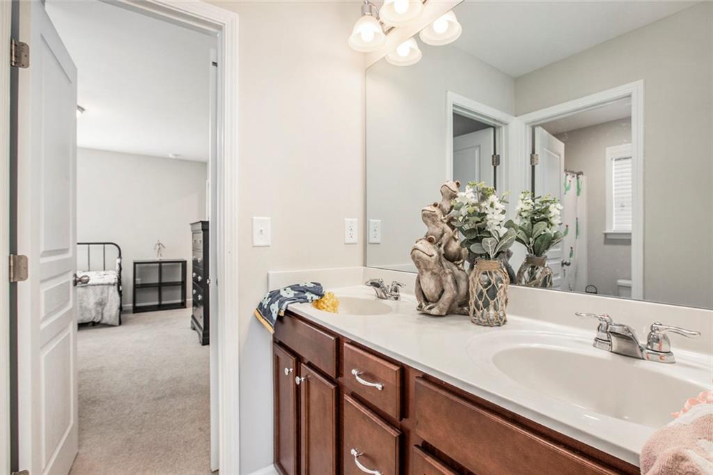Welcome to Your Dream Home in a Premier Community! Nestled in a sought-after neighborhood and a top-rated school district, this beautifully maintained 5-bedroom, 4-bathroom home offers the perfect blend of comfort, style, and convenience. Just 7 years young, this residence boasts open-concept main level living that is ideal for entertaining. In addition, the main level includes a spacious bedroom and full bath—perfect for guests or multi-generational living. Throughout the home, you'll find elegant upgrades typical of luxury homes that include decorative crown molding, premium wainscoting, designer lighting, and fresh interior paint that brings a crisp, new, modern feel. Upstairs, the spacious owner’s suite provides a peaceful retreat. The house was thoughtfully designed in every detail including the laundry room with utility sink on the same level as the owner’s suite. The three secondary bedrooms on the second level are large with walk-in closets. One secondary bedroom has a private full bathroom and two of the bedrooms share a jack-n-jill bathroom with the double sinks separate from the shower and toilet. Step outside to enjoy the stacked stone exterior and unwind on the large, screened porch with extended patio, which overlooks a wooded backdrop that creates the feel of a private oasis. The community offers resort-style amenities that make every day feel like a vacation: a sparkling pool with a thrilling water slide and whimsical mushroom waterfall, four tennis courts, a basketball court, playground, and a vibrant clubhouse. Plus, you're just minutes from a variety of shopping and dining options that make life easy and enjoyable. This home truly has it all—space, style, location, and lifestyle. Come see it for yourself and fall in love!