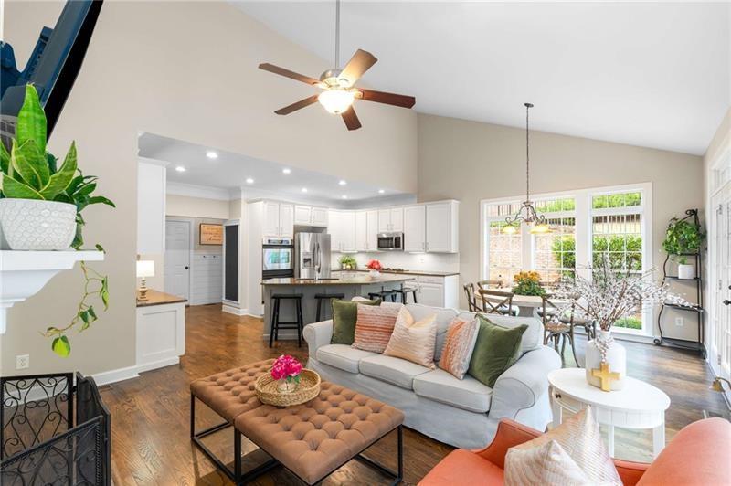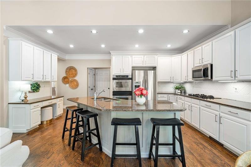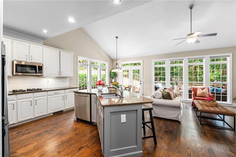 - KitchenCabinets White, Eat-in Kitchen, Keeping Room, Kitchen Island, Pantry, View to Family Room