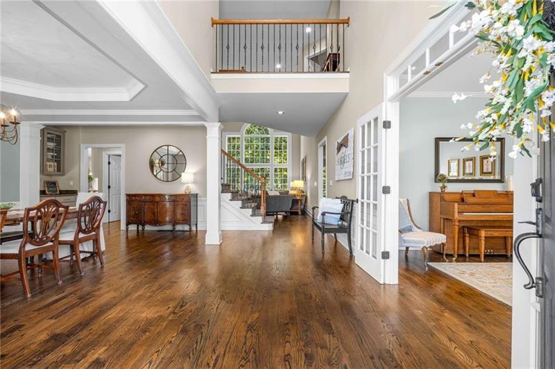 Private 1.2 Acres in a Cul-de-sac!!! One of the largest wooded lots in Edinburgh with 4 sided brick. This Prestigious home in Bear's Best award-winning golf course community designed by Jack Nicklaus and offers three levels of extraordinary living and elegance. Six spacious bedrooms and six bathrooms with a finished basement . Home features a New Roof in 2023 , Newer AC Units with a CLEAN AIR HOME System and a tankless hot water heater installed in 2022. A luxurious HUGE backyard oasis also has a flat front and flat back backyard. There's three spacious sundecks for outdoor dining and relaxation.Upon entering a foyer with high ceilings this home offers abundant natural light.The open-concept living areas are perfect for both entertaining and everyday living, featuring a chef's gourmet kitchen with stainless appliances , mudroom, pantry and a stylish breakfast nook with a door leading to the sundeck. The keeping room boasts a cozy stacked stone fireplace. The Living Room is two stories with a double sided fireplace. Large Dining Room perfect for entertaining.There's a guest bedroom on the main floor with its own bathroom. The primary suite is a true retreat with a lavish en-suite bathroom with double vanities, a soaking tub, and a separate shower and a large closet .Each of the additional bedrooms upstairs are thoughtfully designed with 2 more bathrooms .The finished terrace level has a ton of natural lighting with windows and doors . Boasts a billiards room with pool table ,separate game room , lovely sitting room, another spacious bedroom with full bathroom and a separate room for an office. Also unfinished fitness room and storage room for a workshop. This is an entertainer's dream home perfect for gatherings outside for dining, zip liping, roasting marshmallows by the fire pit , jumping on the trampoline or walking to the river to go fishing. Don’t miss this rare opportunity to own a piece of paradise. Edinburgh is a golf cart friendly neighborhood and offers fantastic amenities, including an Olympic-size pool, a waterslide, tennis courts, a fitness center, a playground and a basketball court. The very active homeowners association plans multiple social events throughout the year. The neighborhood is moments from the Chattahoochee River, a short ride to Suwanee Town Center, Lake Lanier, destination shopping, dining and entertainment. All this in North Gwinnett's award winning schools. Riverside Elementary, North Gwinnett Middle School and North Gwinnett High School.