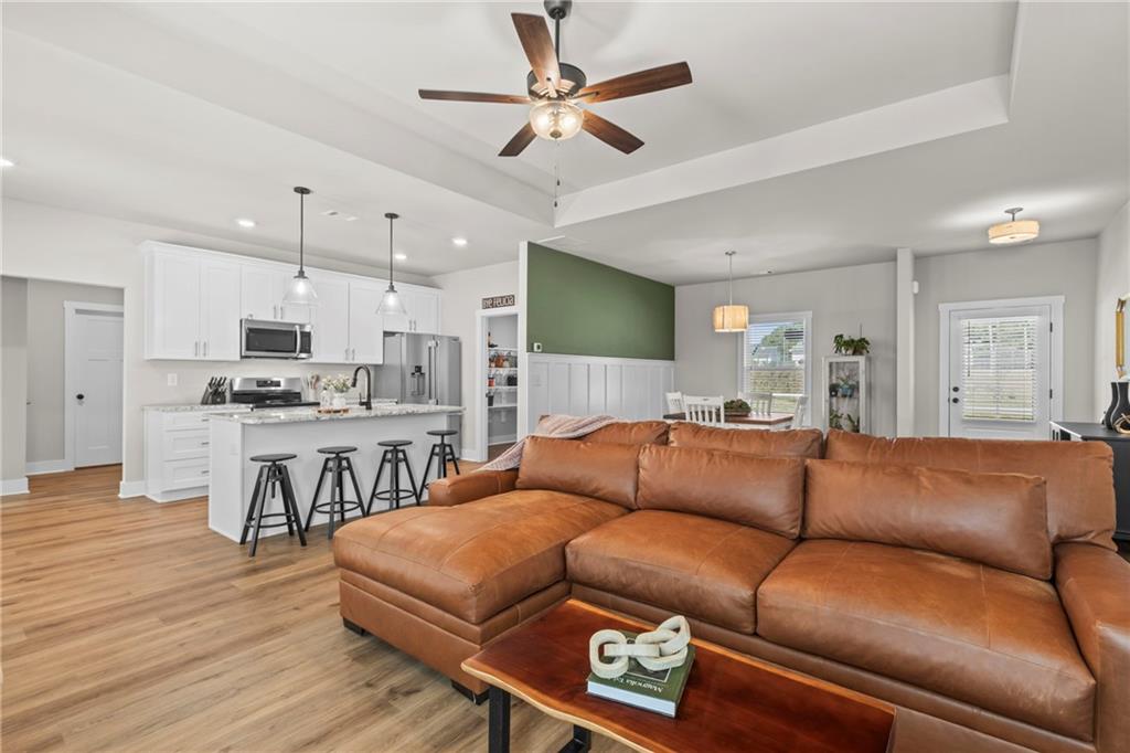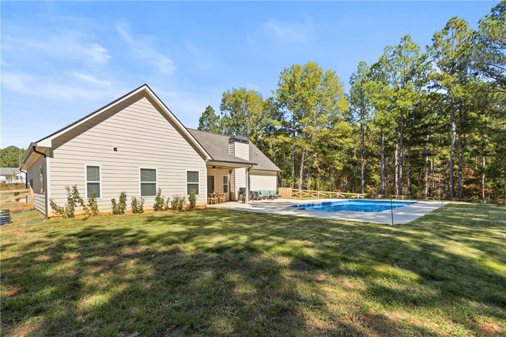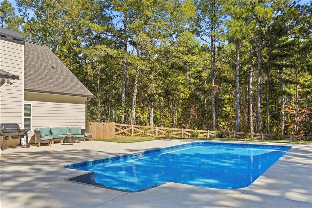 This is the home you’ve been waiting for, better than new construction, thoughtfully designed, and built in 2024 with comfort and lifestyle in mind. From the moment you step inside, you’ll notice the difference. Gorgeous LVP flooring flows throughout, and the open-concept layout makes everyday living and entertaining effortless, connecting the kitchen, dining, and living spaces into one warm and inviting place to gather. The oversized primary suite is more than just a bedroom it’s a retreat. There’s plenty of space to relax, unwind, and enjoy the spa-like bath, and the generous closet space keeps everything beautifully organized. Every detail of this home was designed to make life easier, with thoughtful storage and one-level living that works for every stage of life. Start your mornings or wind down in the evenings on the covered rocking chair front porch, the perfect spot to enjoy a cup of coffee or soak in the fresh fall air. Step out back and discover a private backyard oasis with a heated, in-ground saltwater pool (less than a year old) that turns every day into a staycation. The fully fenced, flat backyard is ideal for gatherings, pets, or play, and the covered patio provides the perfect space to grill, entertain, or simply relax. As an added bonus, the seller is open to selling the home fully furnished, offering a truly move-in ready experience and additional value for the new owner. With so many upgrades already in place, this home offers more value, more comfort, and more lifestyle than anything new in the area, and it’s ready for you to make it yours. All that’s left to do is move in and start creating memories.