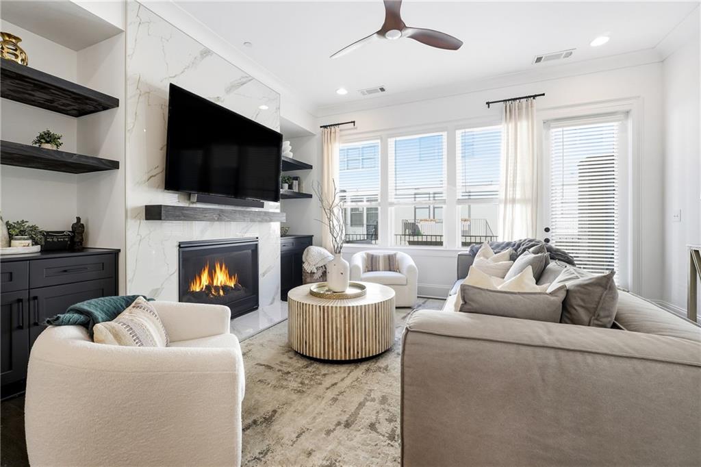 $10K any way you want + up to 1% rate buy-down with our preferred lender, approximately $18,500 in savings! Introducing this former model home, featuring $50K in designer upgrades and a rare no-stairs front entry that welcomes you directly into the main living area. Prime Sandy Springs location just off GA-400—10 min to Buckhead, 15 to Midtown, & 15 to Alpharetta. Ideal for professionals who want quick Atlanta access and suburban comfort. Enjoy a convenient front entry that opens directly into a bright main living area with hardwood floors, a custom marble fireplace, and built-ins. The home features a custom wine cellar, mudroom drop zone, upgraded powder room, and beautifully designed laundry room and custom primary closet. It’s also elevator-ready on all three levels. Upstairs are two spacious en-suite bedrooms, including a Primary Suite with a spa-inspired bath and custom closet. A third en-suite bedroom on the entry level offers flexibility for guests or a home office, plus direct access to the 2-car rear-entry garage. Resort-style amenities: pools, clubhouse, fitness center, business center, and walking trails. Turnkey luxury + unmatched convenience in one of Sandy Springs’ best locations.