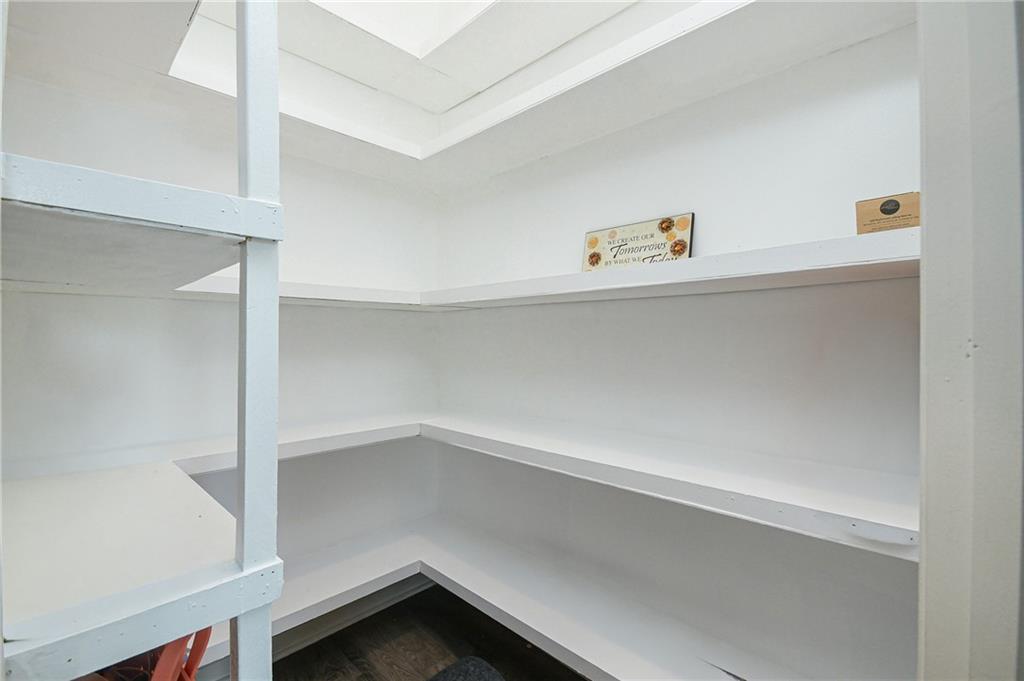 - KitchenCabinets White, Kitchen Island, Pantry Walk-In, Stone Counters, View to Family Room