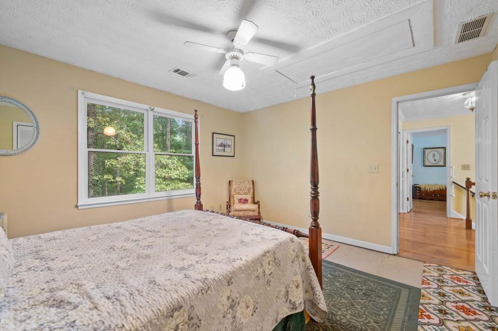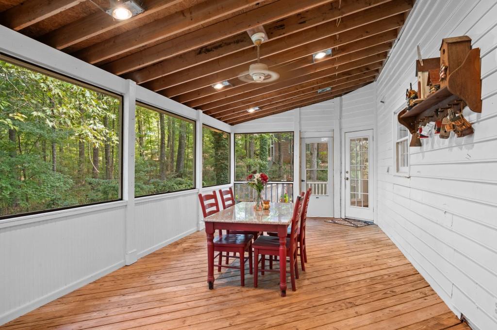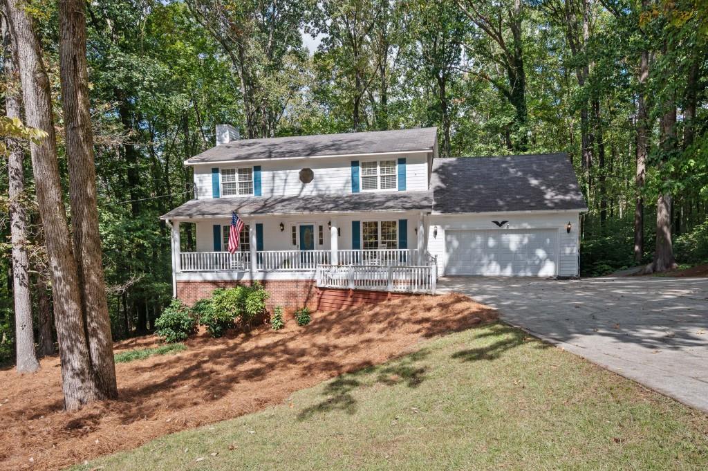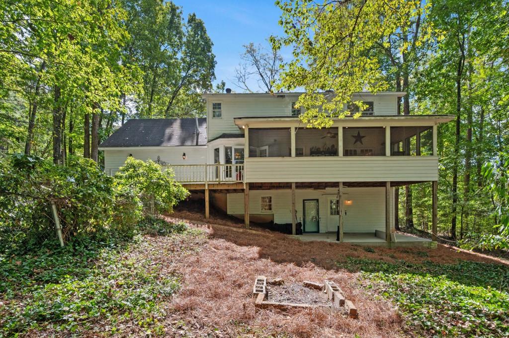Discover a remarkable opportunity in Johnson Forrest subdivision. This classic home sits on nearly an acre of land and offers both impressive curb appeal and versatility. The property offers great potential to be your ideal home with some care and updates. Step inside to a striking two-story foyer that leads into a family room featuring hardwood floors, a gas fireplace, and French doors that open onto a spacious screened porch with beautiful views of the wooded backyard. On the other side of the foyer, you'll find a flexible dining area accented by shiplap paneling, perfect as a formal dining room or easily transformed into an extra living space or den. The kitchen features granite countertops, a functional island, a gas range, and ample space for a breakfast nook or dining table. From the kitchen, enter directly onto the screened porch with an exposed vaulted ceiling that creates a warm and inviting atmosphere. Just outside, an exterior wood deck provides an ideal spot for outdoor grilling and entertaining. Upstairs, the primary suite features a private bath and spacious walk-in closet. There are two more bedrooms, a second bathroom, and a convenient washer and dryer on the second level. The daylight terrace-level offers even more living options, with its own exterior access, plus a bedroom, bathroom, an extra living area, a bonus room, and a partially finished kitchen for added convenience. A level driveway and generous two-car garage on the main level connects directly to the kitchen. Convenient location near GA-316 and Sugarloaf Parkway. This home won't last long!