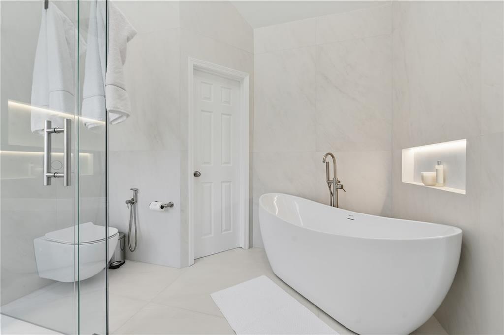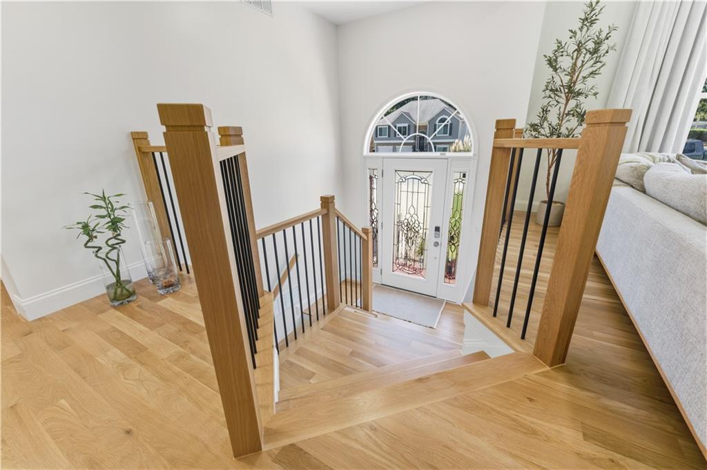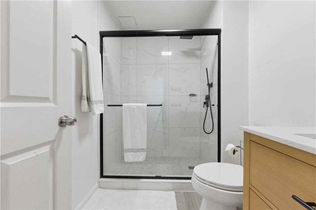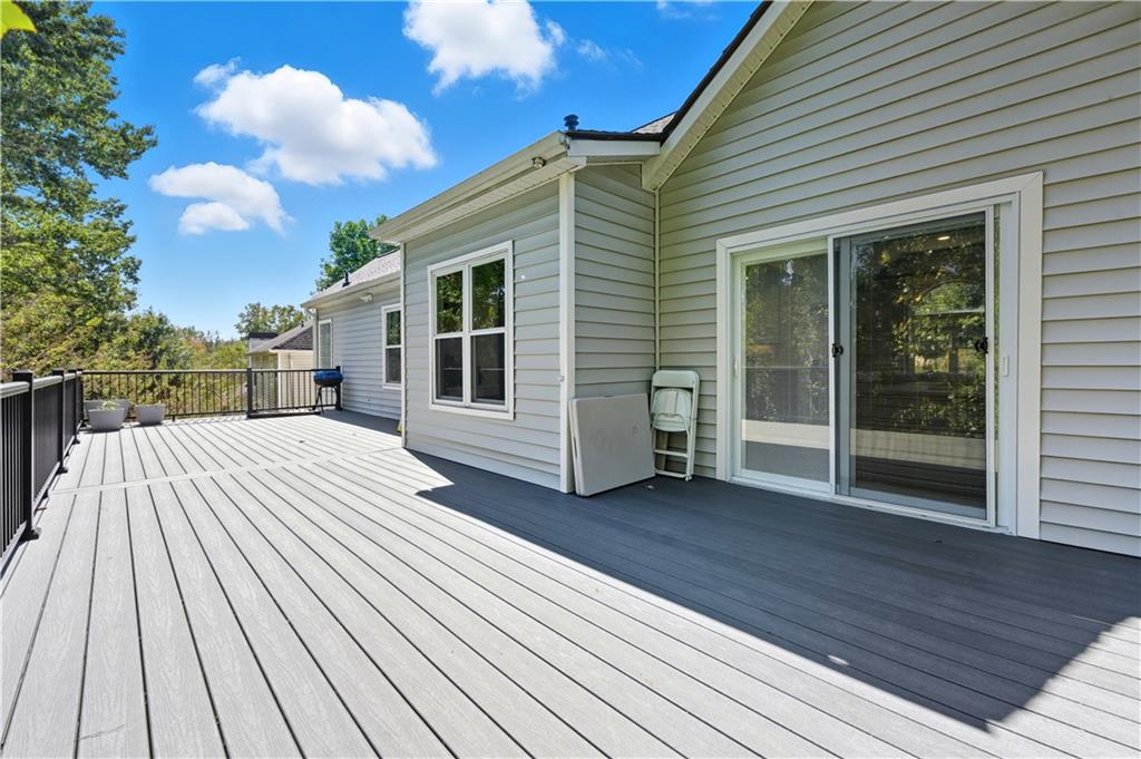 Step into a newly renovated masterpiece that feels like it was designed just for you, where every detail was crafted with love, comfort, and connection in mind. Enjoy peace of mind with a brand-new roof, fresh paint and new solid white oak hardwood floors throughout the main level. A bright open layout perfect for entertaining or everyday living. With 5 spacious bedrooms and 3 full bathrooms, including a luxurious primary suite on the main level, this home blends modern functionality with timeless elegance. Your primary suite is a retreat of its own, complete with a spa-style double shower, freestanding soaking tub, heated floors, and a calming atmosphere that turns everyday routines into rituals of self-care. The gourmet kitchen is the heart of the home — featuring Taj Mahal quartzite countertops, modern slim shaker oatmeal and caramel cabinetry, designer tile backsplash, and top-of-the-line stainless steel appliances. The oversized island seats four comfortably and flows seamlessly into the open family room, where a custom travertine-inspired fireplace sets the tone for cozy gatherings. Slide open the double-panel doors to your full-length 14x40 composite deck, creating the perfect indoor-outdoor connection for relaxing evenings or weekend get-togethers. This also opens possibilities to future expand the home! Downstairs, discover a fully renovated in-law suite with its own private entrance, kitchen, bathroom, laundry, and living area, ideal for extended family, guests, or even passive rental income. Outside, your private backyard oasis with a new concrete patio and retaining wall offers both beauty and function, perfect for barbecues, quiet mornings, or evenings under the stars. The garage features new epoxy floors and a an added 8x9 storage/office/warehouse room. Every inch of this home has been updated with new flooring, kitchen, bathrooms, paint, and thoughtful upgrades, making it 100% move-in ready so you can simply unpack. The welcoming Eagle Glen community offers pool, playground and two tennis courts to enjoy. And the location? Just minutes from downtown Woodstock, where you’ll enjoy charming shops, dining, festivals, and a true sense of community. Top-rated schools and beautiful parks are also just around the corner, offering a lifestyle that’s both vibrant and grounded. This isn’t just a house, it’s home. It’s an opportunity. It’s the life you’ve been waiting for. Schedule your private tour today and come feel what makes this home so special.