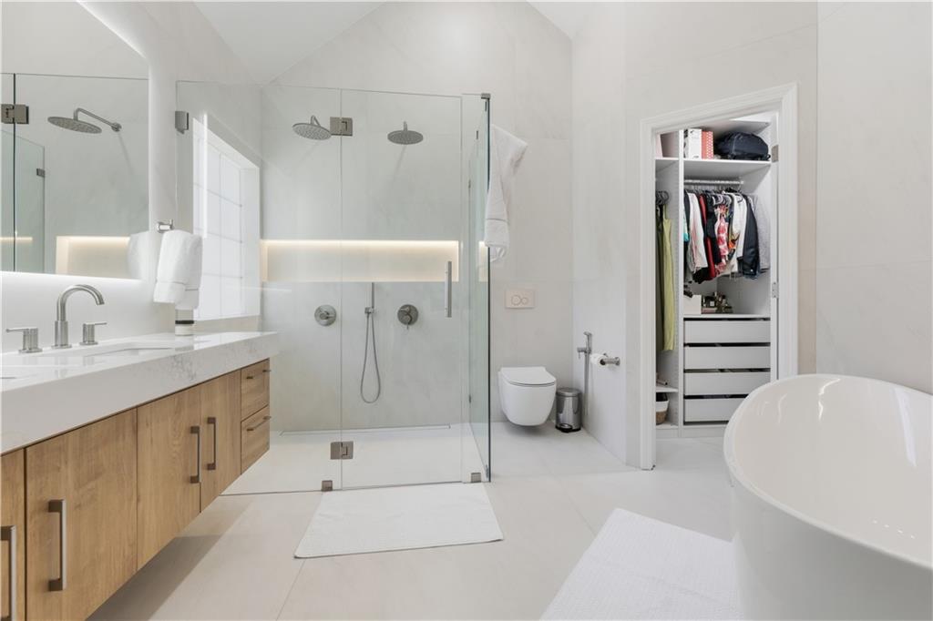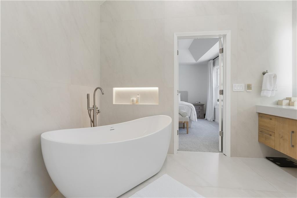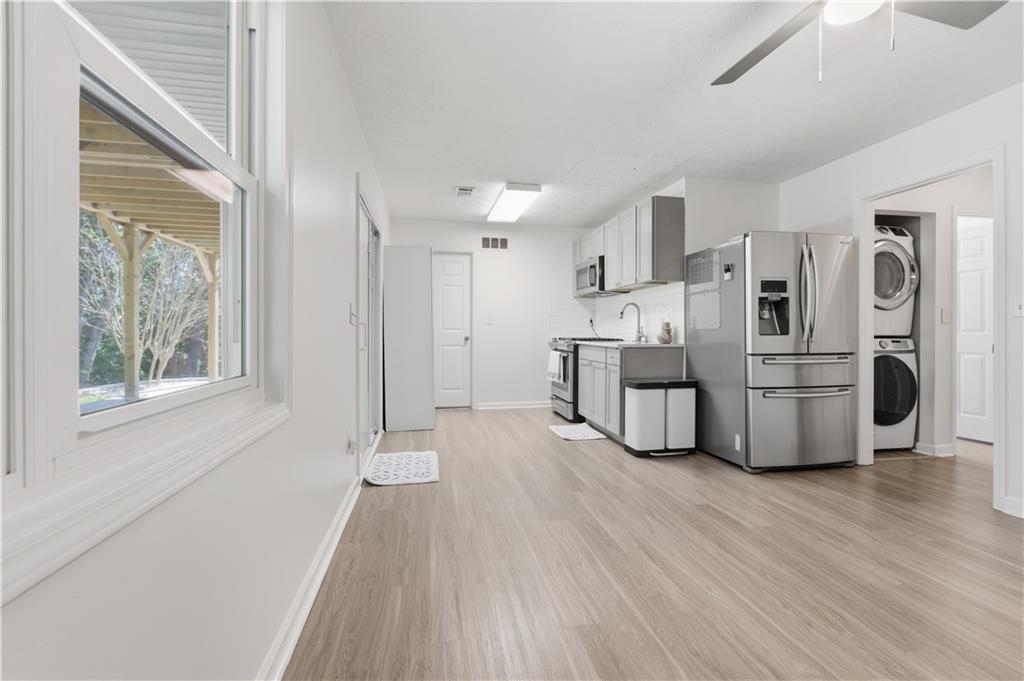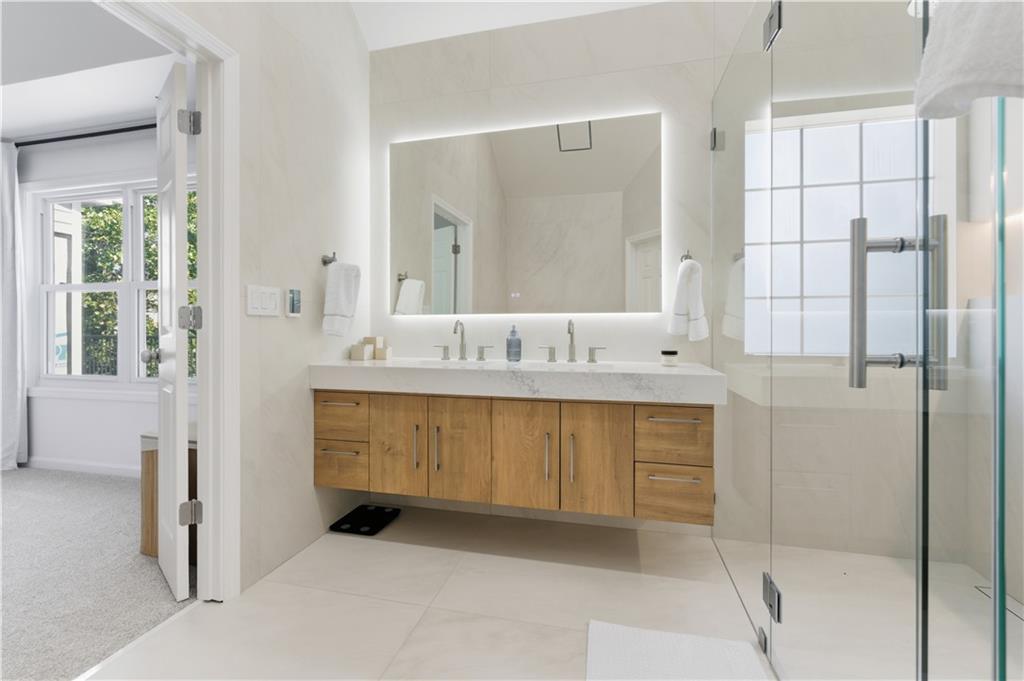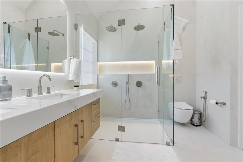 Step into a newly renovated masterpiece that feels like it was designed just for you, where every detail was crafted with love, comfort, and connection in mind. Enjoy peace of mind with a brand-new roof, fresh paint and new solid white oak hardwood floors throughout the main level. A bright open layout perfect for entertaining or everyday living. With 5 spacious bedrooms and 3 full bathrooms, including a luxurious primary suite on the main level, this home blends modern functionality with timeless elegance. Your primary suite is a retreat of its own, complete with a spa-style double shower, freestanding soaking tub, heated floors, and a calming atmosphere that turns everyday routines into rituals of self-care. The gourmet kitchen is the heart of the home — featuring Taj Mahal quartzite countertops, modern slim shaker oatmeal and caramel cabinetry, designer tile backsplash, and top-of-the-line stainless steel appliances. The oversized island seats four comfortably and flows seamlessly into the open family room, where a custom travertine-inspired fireplace sets the tone for cozy gatherings. Slide open the double-panel doors to your full-length 14x40 composite deck, creating the perfect indoor-outdoor connection for relaxing evenings or weekend get-togethers. This also opens possibilities to future expand the home! Downstairs, discover a fully renovated in-law suite with its own private entrance, kitchen, bathroom, laundry, and living area, ideal for extended family, guests, or even passive rental income. Outside, your private backyard oasis with a new concrete patio and retaining wall offers both beauty and function, perfect for barbecues, quiet mornings, or evenings under the stars. The garage features new epoxy floors and a an added 8x9 storage/office/warehouse room. Every inch of this home has been updated with new flooring, kitchen, bathrooms, paint, and thoughtful upgrades, making it 100% move-in ready so you can simply unpack. The welcoming Eagle Glen community offers pool, playground and two tennis courts to enjoy. And the location? Just minutes from downtown Woodstock, where you’ll enjoy charming shops, dining, festivals, and a true sense of community. Top-rated schools and beautiful parks are also just around the corner, offering a lifestyle that’s both vibrant and grounded. This isn’t just a house, it’s home. It’s an opportunity. It’s the life you’ve been waiting for. Schedule your private tour today and come feel what makes this home so special.