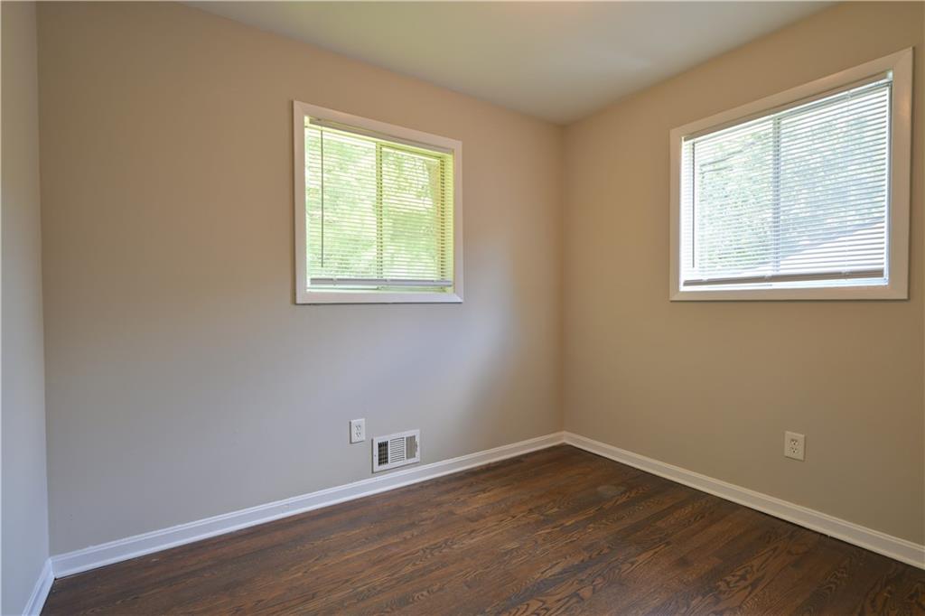 Charming 3 bedroom, 1 bathroom brick Ranch Near West Midtown. Welcome to this beautifully maintained single-story brick ranch, ideally located near Atlanta's vibrant West Midtown. Surrounded by mature trees and a gently sloped lawn, this home combines timeless curb appeal with modern updates inside. Vaulted ceilings and rich hardwood flooring throughout, freshly painted neutral walls for a clean, airy feel, large front windows fill the living space with natural light, two entry closets provide convenient storage, beautifully updated kitchen with white upper/lower cabinets with sleek earth-tone countertops, stainless steel appliances, wood-look vinyl flooring in a warm gray tone durable and stylish, efficient layout with ample storage and prep space. Just minutes from West Midtown and major intown destinations. Enjoy easy access to: Atlanta Belt Line and PATH400 Trails perfect for walking, biking, or exploring local art, restaurants,