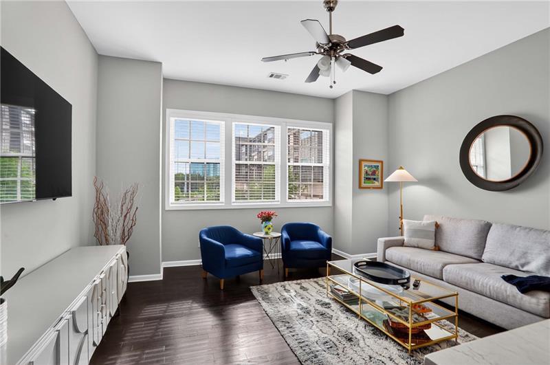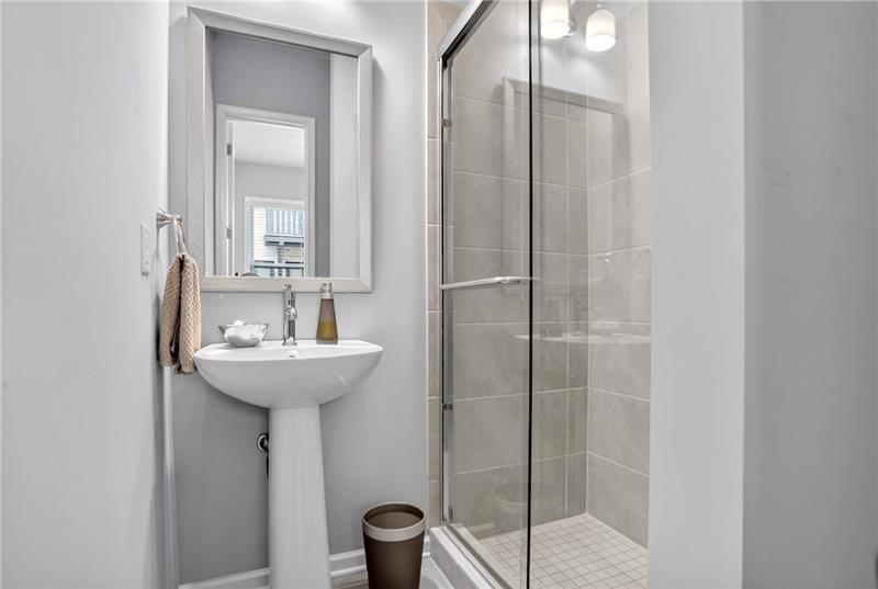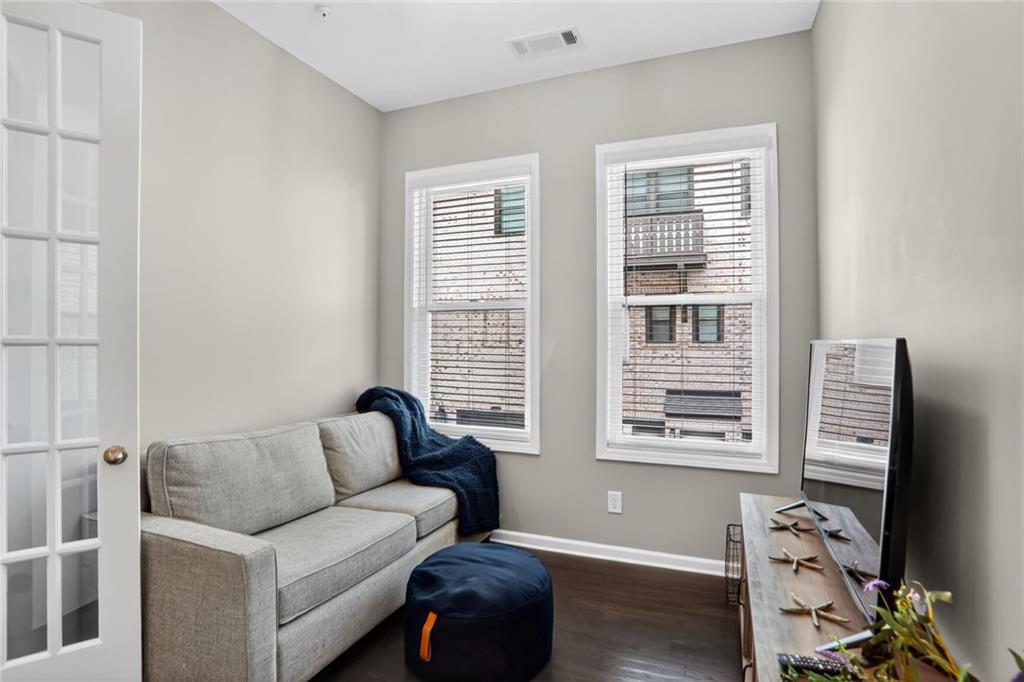 Discover this stunning 2-bedroom, 2.5-bathroom townhome in the heart of the highly coveted community of Aria South in Sandy Springs, perfectly situated within walking distance to MARTA, upscale shops, top restaurants, and the Mercedes-Benz headquarters. Nestled in a boutique building of only five units, this home offers a rare combination of privacy, convenience, and designer finishes. Step inside through the foyer to find pristine hardwoods throughout all three levels. Upon entry discover a versatile secondary bedroom with a full en-suite bath, ideal for guests or a home office. The main level boasts an open-concept floor plan with a spacious living room, dining for four, and a gourmet kitchen featuring upgraded Wellborn cabinetry, stainless steel appliances, a dramatic stone waterfall island, and designer lighting. A stylish half bath and a private balcony complete this level, offering the perfect flow for everyday living or entertaining. On the upper floor, retreat to the expansive primary suite, complete with a luxury bathroom showcasing dual sinks, abundant counter space, an oversized shower, a separate water closet, and a generous walk-in closet with full-size washer and dryer. One of the home's most unique features is the oversized tandem garage, offering an additional alcove perfect for a home gym or secondary office space. The quiet community also includes a sparkling pool, ideal for warm summer days. With its unbeatable location just off GA-400, you'll enjoy easy access to everything Sandy Springs and Atlanta have to offer-making this property the perfect blend of comfort, style, and convenience.