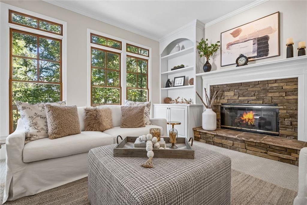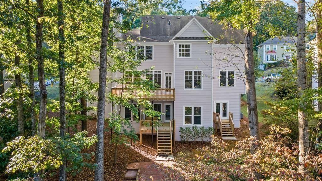 Welcome home to this spacious residence in the highly sought-after Loring Square swim and tennis community! Totally rebuilt in 2004 from the foundation up, you will be impressed the moment you step into the grand two-story foyer, flanked by a custom-built library on one side and a formal living room on the other. The main level boasts a large formal dining room that easily seats twelve, and a beautifully appointed kitchen featuring granite countertops, stainless steel appliances, and a cozy breakfast nook with expansive windows overlooking a tranquil wooded lake view. Just off the kitchen is a sunken family room with a fireplace and custom built-ins, opening directly onto the deck—perfect for year-round entertaining. A convenient half bath, coat closet, and access to a spacious two-car garage with additional storage complete the main level. Upstairs, the generous owner’s suite includes a luxurious en suite bath with a jacuzzi soaking tub, walk-in shower, dual vanities, water closet, linen closet, and a walk-in closet. Three additional bedrooms with ample closet space, two full baths, a laundry room with utility sink, and a unique loft area with custom desks connecting two of the bedrooms offer plenty of functionality and charm. The fully finished lower level includes four versatile rooms all with custom wood shelving and bookcases. You will find a wet bar, full bathroom with walk-in shower, two utility rooms, and two decks—ideal for guests, a home office, or multi-generational living. Freshly painted throughout, and brand new main/lower level HVAC system, this home is in move-in condition. All of this is just minutes from historic Kennesaw Mountain National Battlefield Park, schools, shopping, dining, and more.