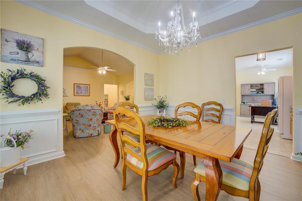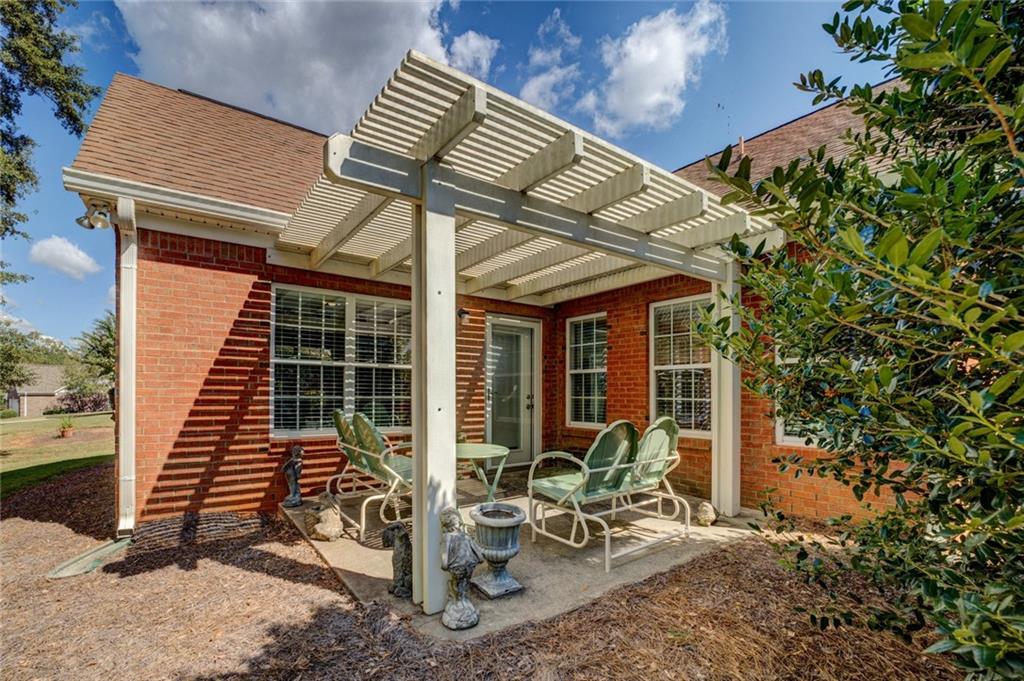 Welcome to the beautifully maintained 3-bedroom, 2.5-bath residence featuring an open floor plan and timeless all-brick construction. Located just a short walk to Historic Social Circle, Georgia, this sought after 55+ community offers a peaceful lifestyle with no school taxes at age 65 and handicap accessibility throughout. Recent updates include new LVP flooring and interior paint, new lighting including pendants in the kitchen, and bathroom fixtures. Elegant bullnose corners and a heavy trim package add a polished high-end finish throughout the home, enhancing its open and inviting feel. The home features professional new landscaping enhanced by a Rainbird irrigation control system for easy and efficient lawn care. The home welcomes you with a spacious foyer featuring 9-foot ceilings , LVP flooring, a convenient coat closet, and a half bath with a pedestal sink. The great room offers vaulted ceilings, durable LVP flooring, a ventless gas fireplace with gas logs, and a decorative ledge, creating a warm and inviting space for relaxing or entertaining. The bright and airy sunroom features vaulted ceilings and large windows that fill the room with natural light. It opens to a patio with a charming pergola. The fireplace separates the great room and sunroom. The kitchen showcases ceramic tile flooring, custom stained cabinets, Corian countertops, and a movable Corian surface island with storage drawers. Additional features include a tile backsplash, black appliances, a breakfast bar and a spacious breakfast area with an open view of the great room. The elegant dining room features LVP flooring, a tray ceiling, chair rail and wainscoting, making it an ideal space for formal or casual gathering. The owner's suite features LVP flooring and a double tray ceiling creating a relaxing and elegant retreat. The owner's bath is beautifully updated with new ceramic tile, a new tiled walk-in shower with new glass door, double vanity, garden tub and a custom walk-in closet system with adjustable shelving. The two additional bedrooms boasts LVP flooring, and share an adjoining full bathroom. One of the additional bedrooms has a vaulted ceiling, a charming oval window and built-in closet system. The second additional bedroom has a walk-in closet with built-in closet system. This home is in an ideal location just 7 minutes to Interstate 20 and a short drive to Historic Covington. Hartsfield International Airport, Athens and Lake Oconee are a 45 minute drive while Hard Labor Creek State Park and Madison are 20 minutes away. Additionally the new RIVIAN EV truck plant and Takeda Pharmaceuticals is a 15 minute drive. Don't miss this incredible opportunity!