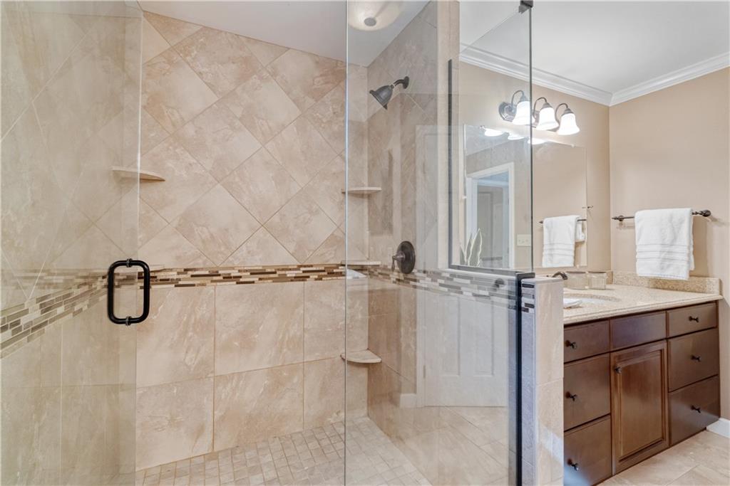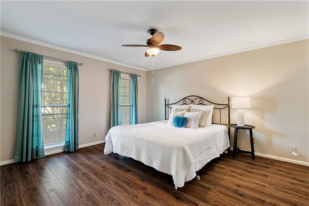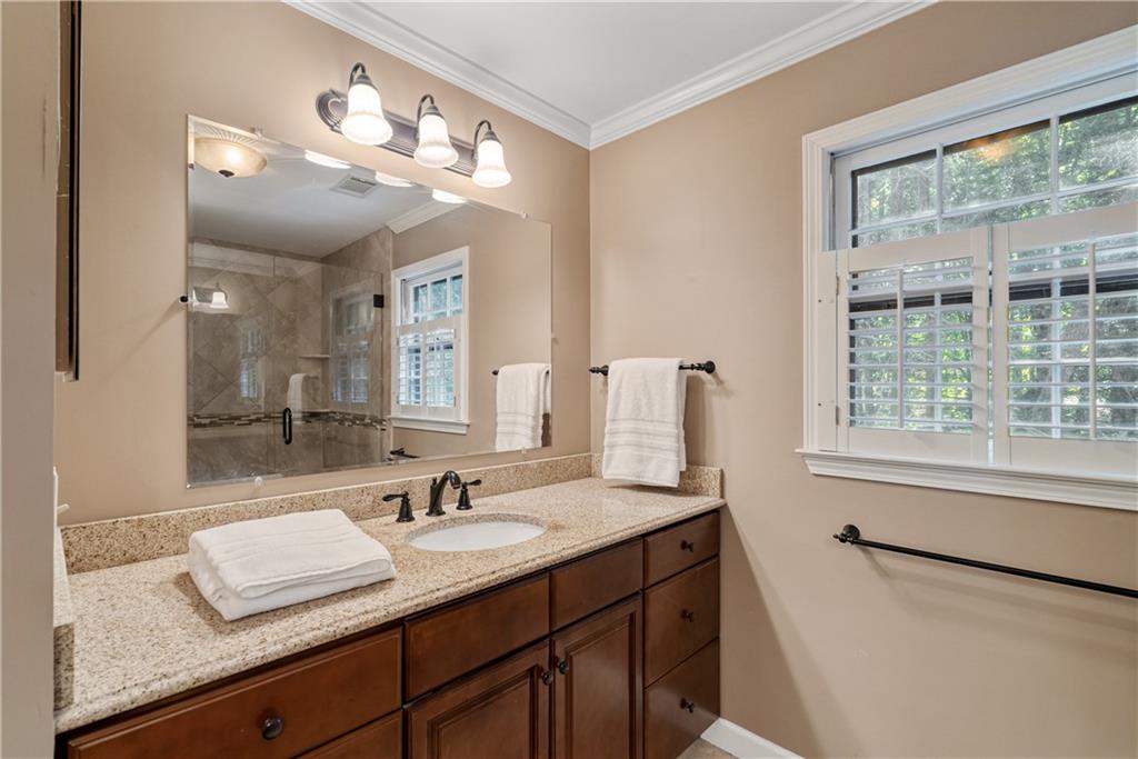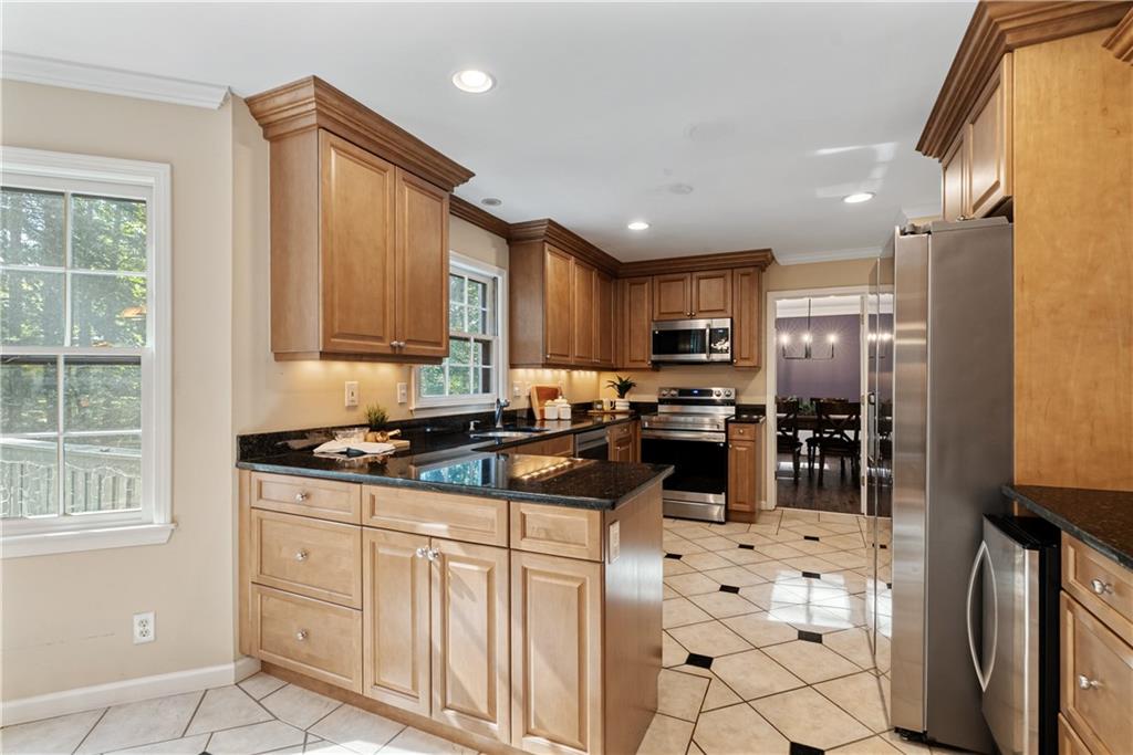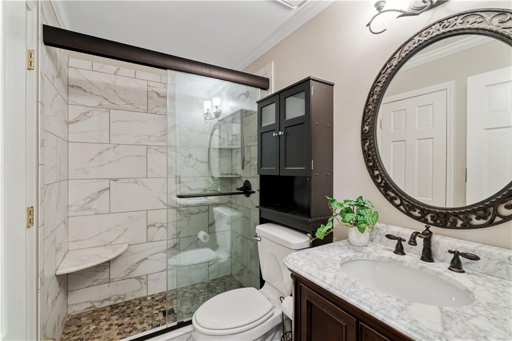 Classic charm meets modern comfort in this beautifully maintained five-bedroom brick home tucked into one of Duluth’s most convenient locations close to Berkeley Hills Country Club. Step inside to find a spacious layout designed for both everyday living and effortless entertaining. The updated kitchen features rich wood cabinetry, granite countertops, stainless-steel appliances, and a view to the fireside family room. The main level offers Luxury vinyl, ceramic, and wood floors, a bedroom and full bath—perfect for guests or an office—and both front and back staircases for easy flow. Upstairs, the owner’s suite feels bright and open with a trey ceiling and two generous walk-in closets, while the renovated bathrooms add a touch of luxury. The partially finished terrace level provides additional living or media space and opens to a private patio area, ideal for relaxing or entertaining and lots of unfinished space for storage and a workshop. Enjoy morning coffee or evening gatherings on the expansive deck overlooking the wooded backyard, offering peace and privacy right in the heart of the city. The driveway extends to the back for extra parking and easy access to the two-car garage. All this, just minutes from I-85, shopping, dining, and top-rated schools—making this the perfect blend of style, comfort, and location.