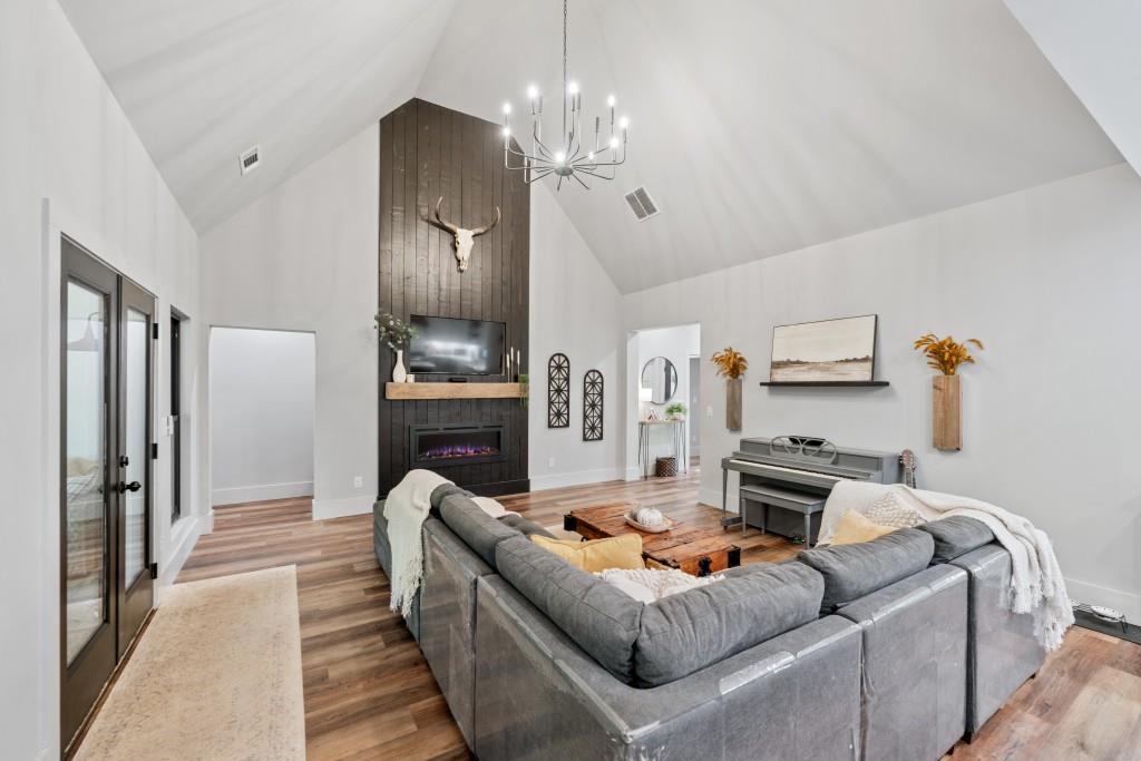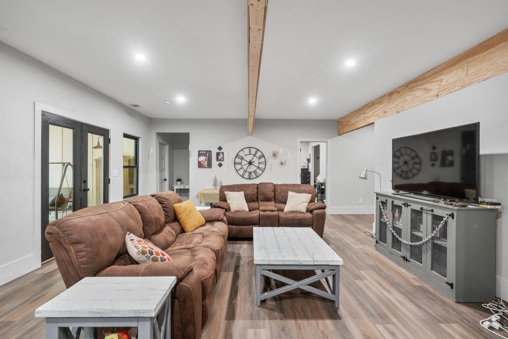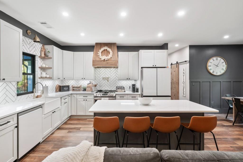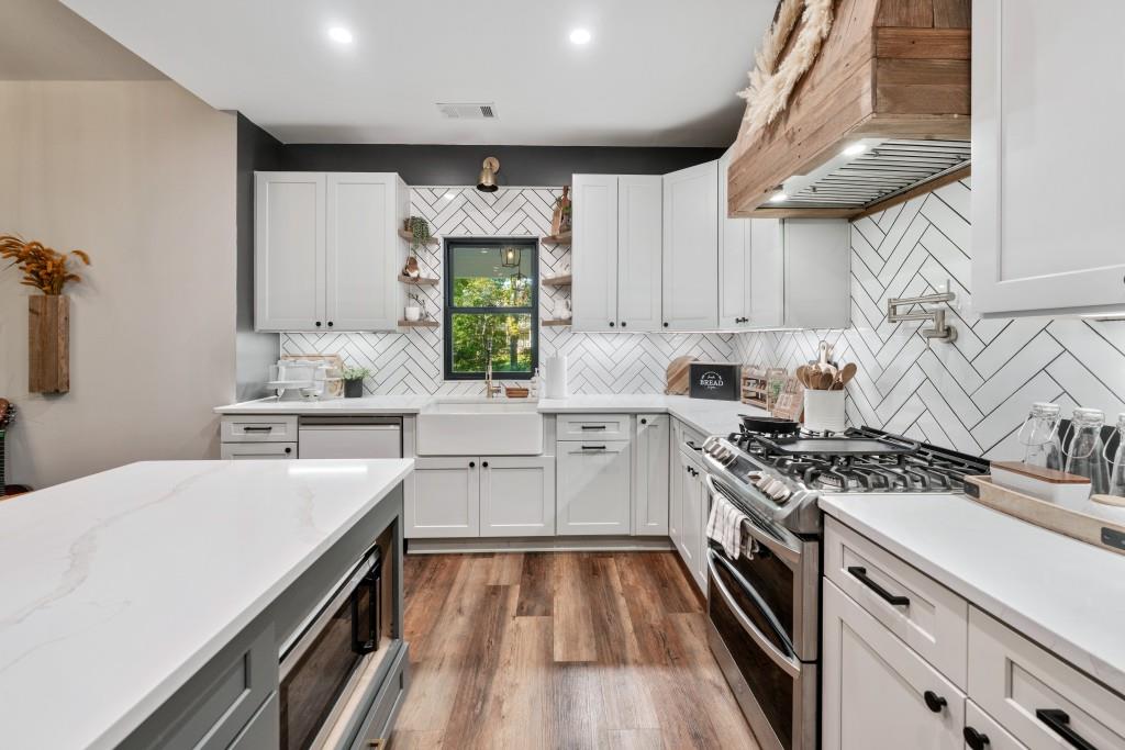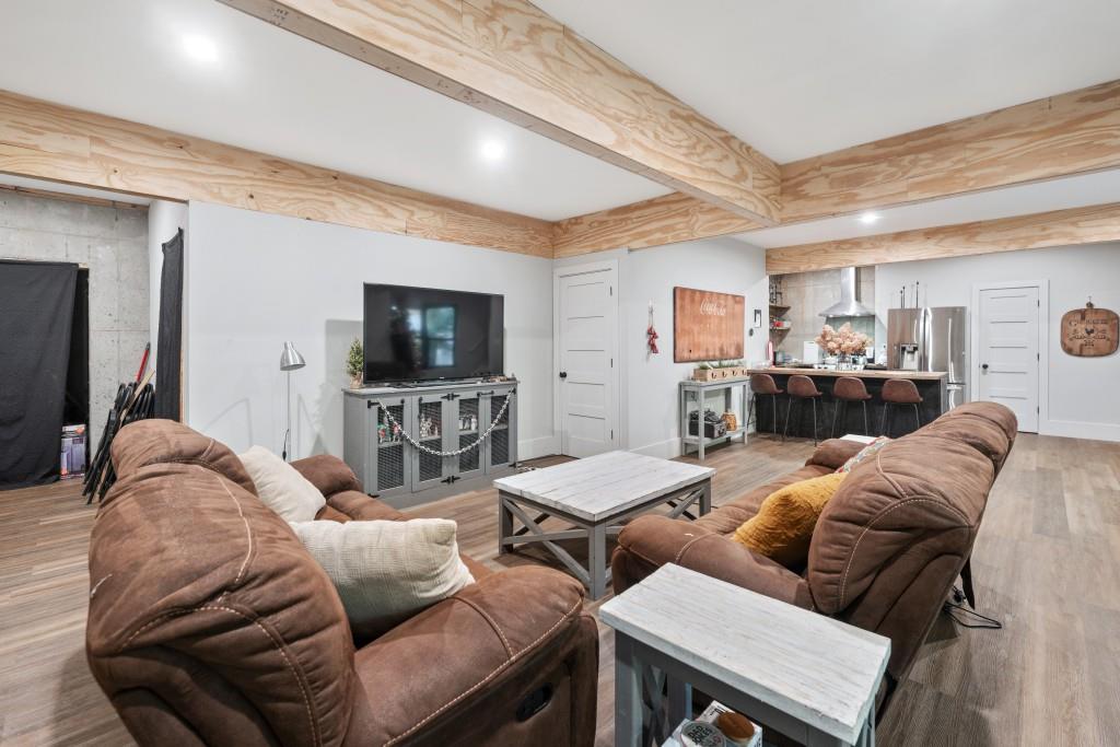 Stunning Modern Farmhouse Retreat on 2 Acres! Welcome to this breathtaking custom-built modern farmhouse - only three years young - perfectly nestled on two serene acres. This thoughtfully designed home blends luxury, comfort, and craftsmanship in every detail. Step inside to find luxury vinyl flooring throughout the entire home, complementing the open-concept floor plan and soaring vaulted ceilings. The family room features custom vertical shiplap and abundant natural light, creating a warm, inviting space for gatherings. The gourmet kitchen is a showpiece, boasting shaker-style cabinets with soft-close doors and drawers, a fireclay farmhouse apron sink, double oven with custom vent hood, pot filler, stone countertops, and a striking herringbone subway tile backsplash. A spacious island anchors the space - perfect for meal prep and casual dining - while the Samsung Bespoke Smart appliances (WiFi-enabled and color-matched to the cabinetry) add a sleek, modern touch. The main level offers three bedrooms, two full baths, a half bath, and a stunning office with a two-story vaulted ceiling and custom built-in bookshelves. The primary suite feels like a private spa retreat, featuring a double vanity with stone countertops, shaker cabinetry, and a luxurious 55-inch soaking tub with a freestanding faucet and sprayer. The finished basement expands the living space with two additional bedrooms, a full and half bath, and a complete kitchen with a double oven, stainless-steel sink, and versatile rooms for media, storage, or recreation. The laundry room includes a sink, storage cabinetry, stone countertop, and an expandable drying rack - every detail designed for convenience. Enjoy peaceful views of the koi pond, manicured landscaping, and seasonal color from the lanai. With no HOA and plenty of space to breathe, this property offers the perfect fusion of modern style, rustic charm, and total privacy. Truly turnkey and ready to welcome its next owner home!