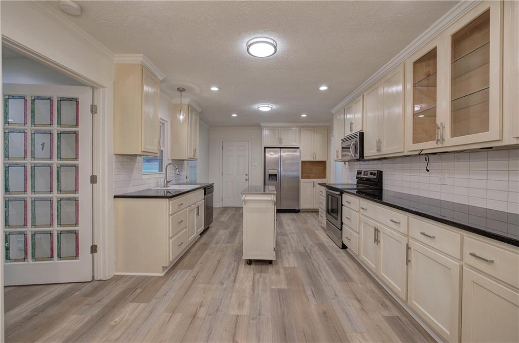 Welcome home to 211 Alfred Ave! This stunning 3-bedroom, 2-bathroom home has been completely renovated inside and out, blending modern upgrades with timeless charm. From the moment you arrive, you’ll be greeted by a spacious front porch featuring ceiling fans and a classic porch swing—the perfect spot to enjoy your morning coffee or unwind in the evening. Step inside to find a bright, open living room with brand-new LVP flooring that flows seamlessly throughout the entire home, creating a clean and cohesive look. The kitchen is a true showstopper, offering solid surface countertops, stainless steel appliances, a beautiful tiled backsplash, and a rolling island that adds both flexibility and extra prep space. A cozy breakfast area sits just off the kitchen, making family meals or casual dining effortless. The spacious ensuite bedroom is conveniently located off the kitchen and features French doors leading to a newer deck, allowing plenty of natural light to fill the space. The ensuite bathroom boasts a tiled shower, a wooden vanity, and a large walk-in closet with direct access to the laundry room for added convenience. Down the hall from the living room are two additional bedrooms, both with LVP flooring, closets, and easy access to the updated guest bathroom, which includes a stylish vanity and a shower/tub combo. Step outside to your oversized deck, perfect for grilling, entertaining, or simply enjoying the peaceful backyard. The yard offers privacy and room for kids, pets, or gardening, and there’s even a storage shed for all your outdoor essentials. Every detail of this home has been thoughtfully designed for comfort, style, and functionality—ready for you to move right in and enjoy.