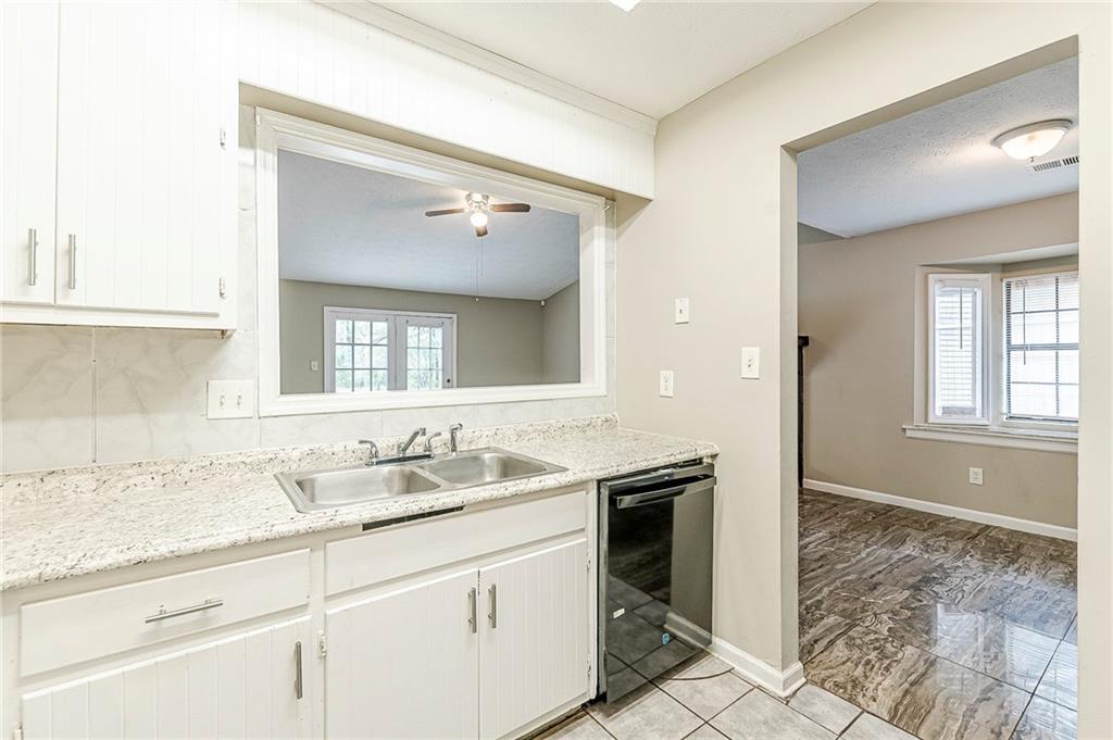 - KitchenCabinets White, Stone Counters, View to Family Room