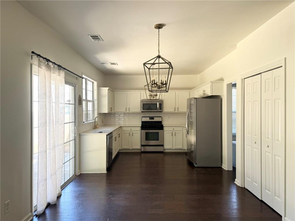 Welcome home to this beautifully maintained 3-bedroom, 2.5-bathroom single-family gem nestled in the sought-after Woodlands community of Woodstock, GA. With 2,005 sq ft of comfortable living space, this inviting residence strikes the perfect balance of style, functionality, and location. Step inside to discover an open floorplan with vaulted ceilings, dramatic natural light, and rich hardwood floors creating an airy, welcoming atmosphere. The heart of the home is the kitchen — complete with cabinetry, solid surface counters, and a full suite of new appliances — where you’ll love preparing meals and entertaining together. The spacious master suite offers a private retreat with a large walk-in closet, and an ensuite bathroom featuring a double vanity, separate soaking tub, and walk-in glass shower and two additional bedrooms. Amenity-rich living awaits: Residents enjoy access to lighted tennis courts, walking trails, playgrounds, clubhouse facilities, and two pools with water slides. Plus, the brand-new Little River Park is being developed less than a mile away, adding even more opportunities for outdoor recreation and community connection. All this, plus a convenient location just minutes from downtown Woodstock, great dining, shopping, and access to 575 and 400.