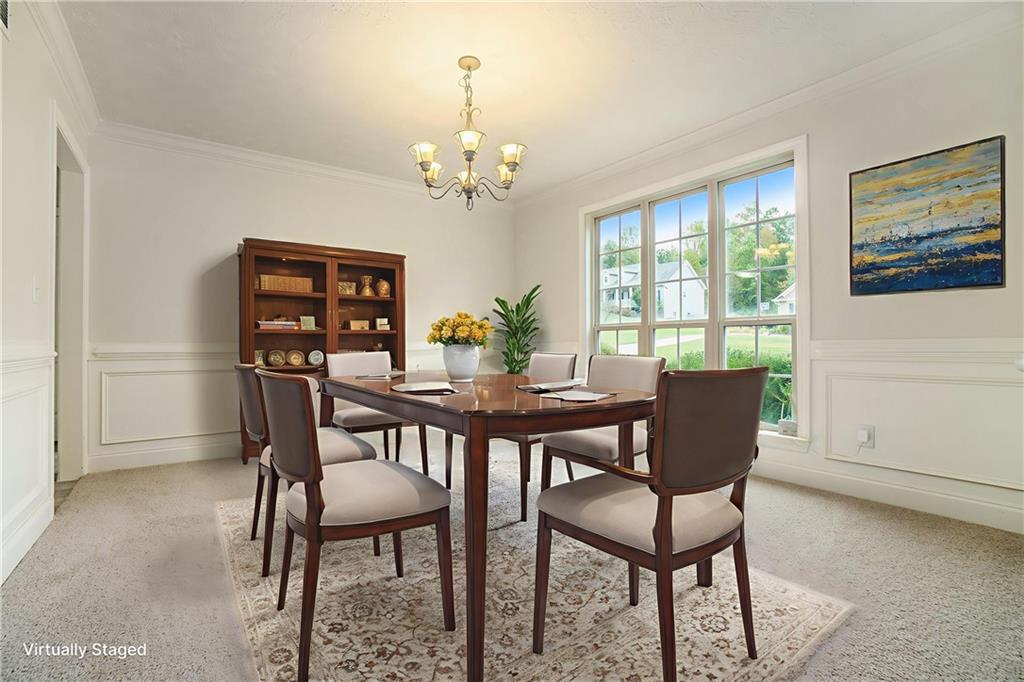 Welcome to this inviting home featuring a vaulted family room with a cozy fireplace and a separate dining room ideal for gatherings. The eat-in kitchen offers a convenient pantry and plenty of space. The primary bedroom includes a walk-in closet and a private ensuite bathroom with a separate soaking tub and shower. Two additional bedrooms provide flexibility for guests or a home office. Enjoy outdoor living on the deck overlooking the fenced backyard. Additional features include a partial unfinished basement and a two-car garage for extra storage and parking.