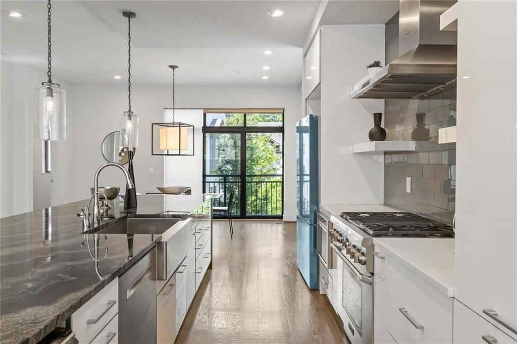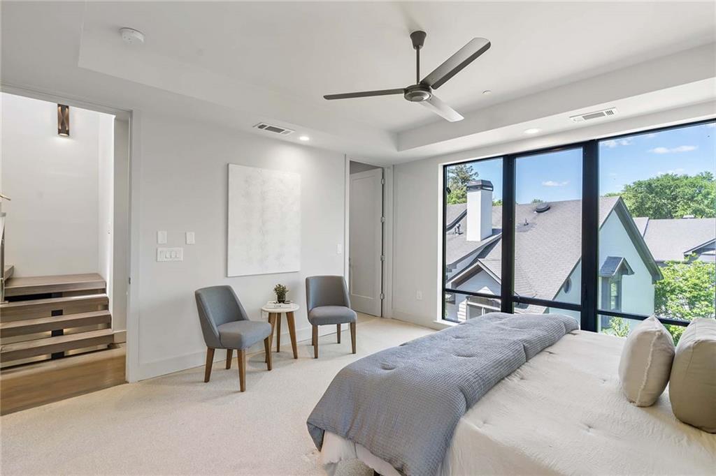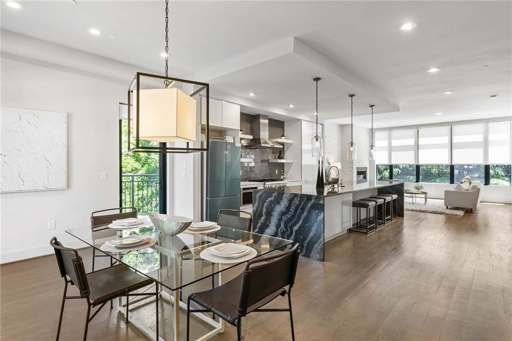 Welcome to 914 Lenox Boulevard, a stunning modern home in the heart of Atlanta. The gated community of Boulevard at Lenox perfectly blends sleek design with luxury living. Built in 2018, this like-new end unit residence features three bedrooms, four and a half bathrooms, an elevator, and a striking floating staircase. The open floor plan is bright and spacious with oversized windows, high ceilings, and designer finishes throughout. On the ground level, a welcoming foyer leads to a guest bedroom with a full bath and easy access to the two-car garage. Hardwood floors and a beautiful staircase set the tone as you move upstairs to the main living area, which showcases exposed brick walls, a sleek linear fireplace, and access to a private grilling patio surrounded by greenery. The gourmet kitchen is a showstopper with a large waterfall island offering seating and storage, stainless steel appliances, a beverage fridge, and open views to the dining and living spaces. Upstairs, the primary suite offers a luxurious retreat with a spa-like bathroom featuring a double vanity, walk-in shower, and oversized soaking tub. A spacious secondary bedroom with a custom closet and en suite bath, plus a beautifully designed laundry room, complete this level. The top floor is a versatile bonus space with a full bath, ideal as a secondary living area, office, or guest suite. Step outside to the rooftop patio, fully equipped with an outdoor kitchen, gas fireplace, and generous lounge area, perfect for entertaining or relaxing under the Atlanta skyline. Located in one of Atlanta’s most desirable neighborhoods, this home offers a rare combination of privacy, luxury, and convenience just minutes from the city’s best shopping, dining, and entertainment.