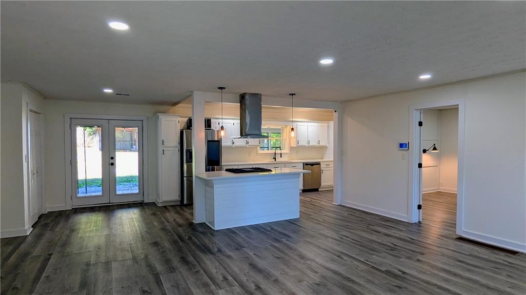 Don't get me wrong: you could hide-a-way here. Maybe you'd be snuggled up reading next to the electric fireplace in the primary or sipping on a cup of coffee in the sunroom as you look out at the garden or even tinkering away late into the night on the next big thing out in the workshop - I could imagine that. But let's be honest, with its sprawling open concept layout, beautiful galley kitchen with high-end stainless-steel appliances, and a built-in gas stove on the back patio, this home was designed for entertaining! With nearly 2000 sq ft, this renovated ranch features four generously sized bedrooms and three full bathrooms (two ensuites), all on a level, well-maintained lot which is both private and centrally located in southwest Cobb. Within hiking distance to the Silver Comet Trail and just a few minutes away from shopping, dining, and I-20, this home provides flexibility no matter your adventure. Schedule a showing to see it for yourself! Minimum lease term of 12 months required. All occupants 18 years or older must complete an application ($75 fee per adult, paid online via credit card). Multiple applications may be reviewed at once. One time Security Deposit due upon signing of the lease.