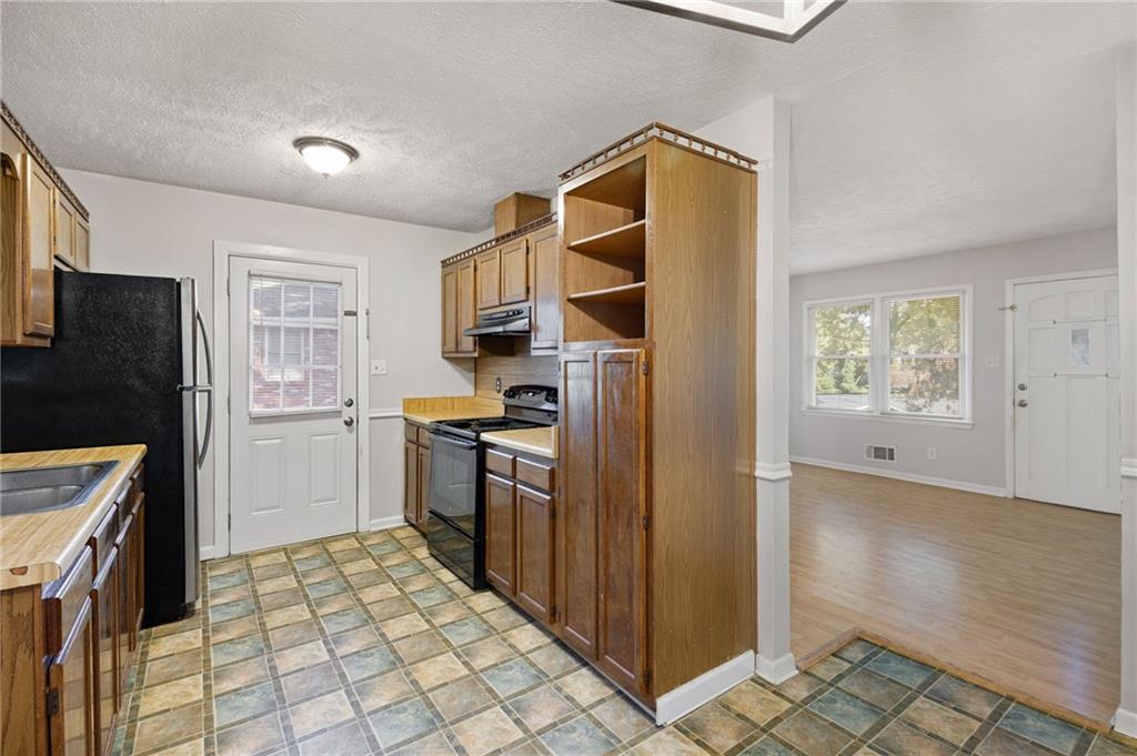- KitchenCabinets Stain, Eat-in Kitchen, Laminate Counters