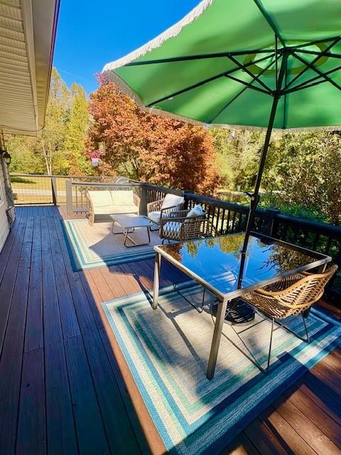 Looking for that one-level country charm?On a 1+ acre corner lot, bordered by mature trees, this house is truly a find. An open concept layout welcomes you into a spacious living area with new hardwood floors, a fireplace and natural lighting. A bright kitchen, complete with appliances, large pantry, closet and expandable island , encourages meals and mingling with convenience. Each neutral-colored bedroom boasts large windows, closets and hardwood floors that lend to creative, yet comfortable styles. The rectangular dining room has large windows, opening to a relaxing view while dining, with the added feature of french doors leading into the spacious living area. One can step outside to a refreshed, wrap around deck with sets of stairs as well as a pet ramp. This deck is a most inviting space to unwind, host barbecues, or simply enjoy the quiet beauty of your surroundings. A well built ,12X16 shed, with electric, is a valuable asset to this property as well. With over an acre of land, there is room to garden, play, or add enhancements, all while enjoying the benefits of a tucked-away neighborhood just minutes from Lake Lanier public access, North Georgia Premier Outlets, shopping, dining (Smokin' Mike's BBQ!), great churches and schools. This home isn't just move in ready - it is designed for living well. Enjoy the balance of style, comfort and country at 5255 Lawson Robinson Road, Georgia