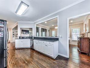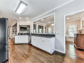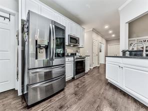 - KitchenBreakfast Bar, Cabinets White, Stone Counters, View to Family Room