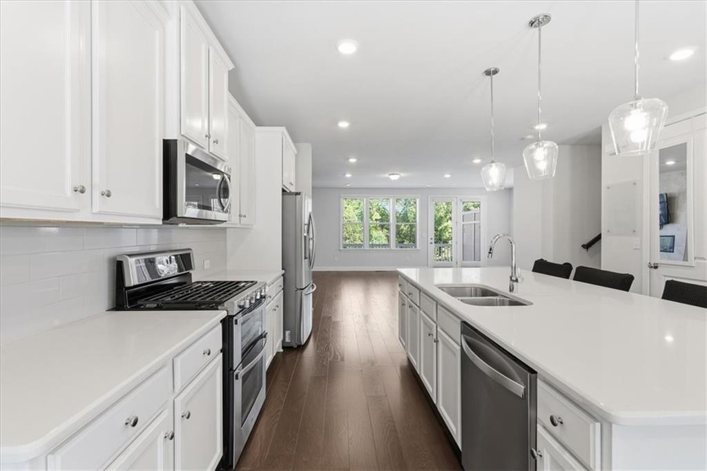 Luxury 4-Bedroom End-Unit Townhome with Pool Views, 2-Car Garage & Lowest Rent in the Community – Available Now! Built in 2021, this modern 3-level end-unit townhome in the gated Carver Hills community offers luxury, natural light, and unbeatable value. Featuring 10’ ceilings, hardwood floors throughout (except bedrooms), recessed lighting, and crown molding, this home blends elegance and functionality. The open-concept main level flows from the bright living room to a chef’s kitchen and dining area, opening to a private deck—perfect for relaxing or entertaining. Upstairs, the primary suite features a large walk-in closet, double vanities, and a spacious shower. Two additional bedrooms include walk-in closets and upgraded en-suite baths, while the laundry room comes with a washer and dryer and extra shelving. The terrace level offers a fourth bedroom with full bath, ideal for guests, an office, or flex space. As an end unit, enjoy abundant natural light, clear front and back views, and a private green space to the side. The pool sits just behind the home for easy access. Community amenities include a resort-style pool with cabanas, grilling area, firepit, playground, and ample guest parking. Prime location near Perimeter Mall, Sandy Springs, Buckhead, and Peachtree Corners, with quick access to I-285, GA-400, and Hwy 141. Close to Assembly Studios Atlanta, H Mart, The Forum, and major employers like State Farm, Mercedes-Benz, and IHG. PETS ARE ALLOWED! Move-in ready luxury living — with washer & dryer included and the lowest rent in the community!