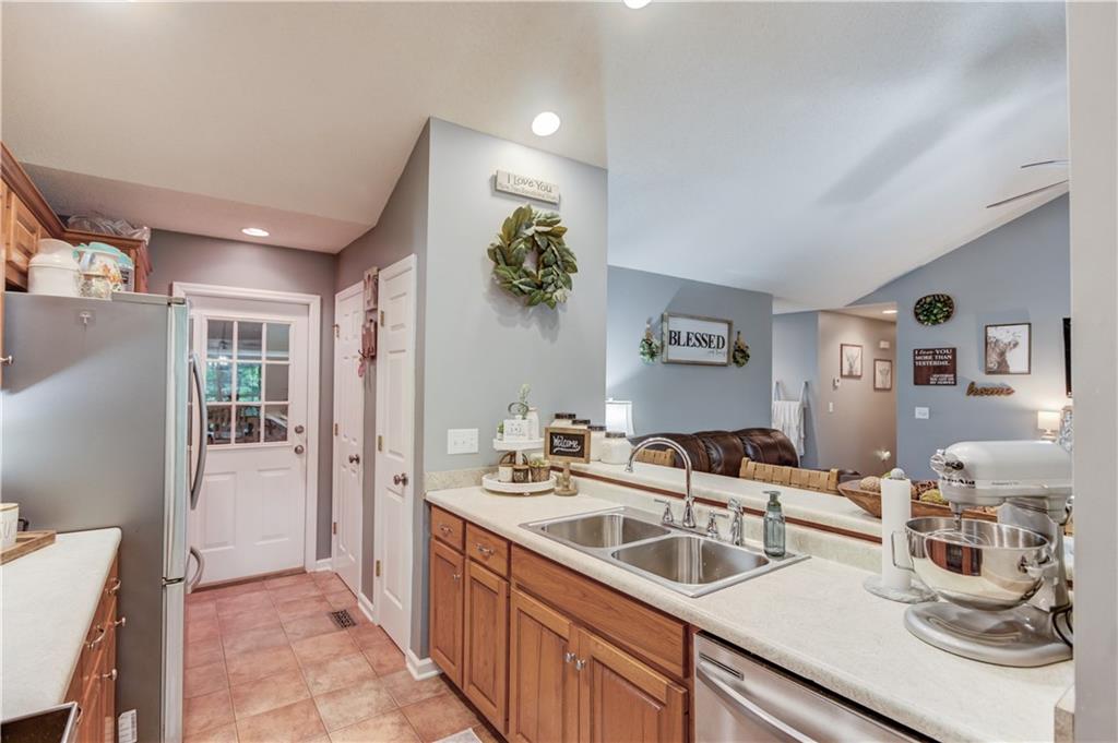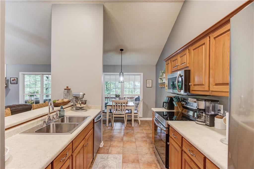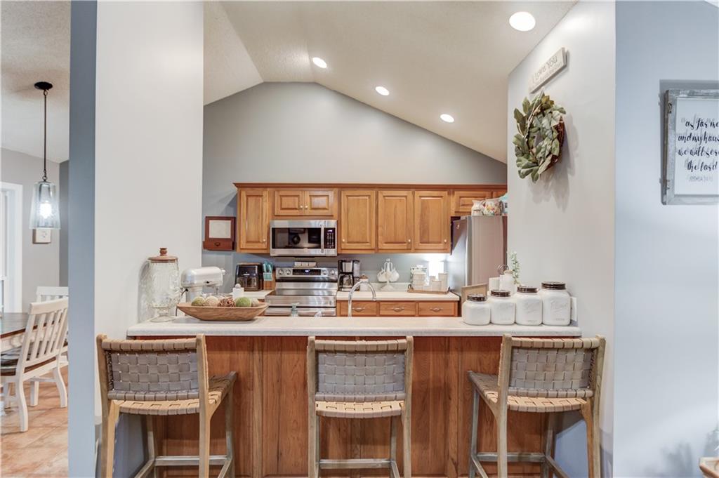 - KitchenBreakfast Bar, Pantry, Solid Surface Counters, View to Family Room