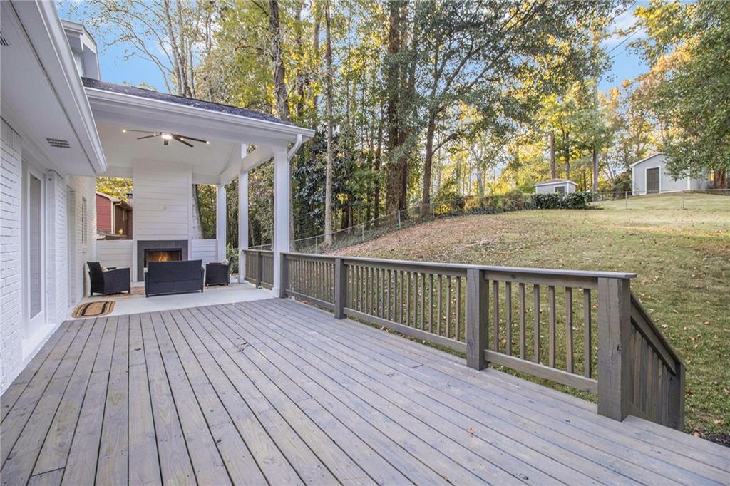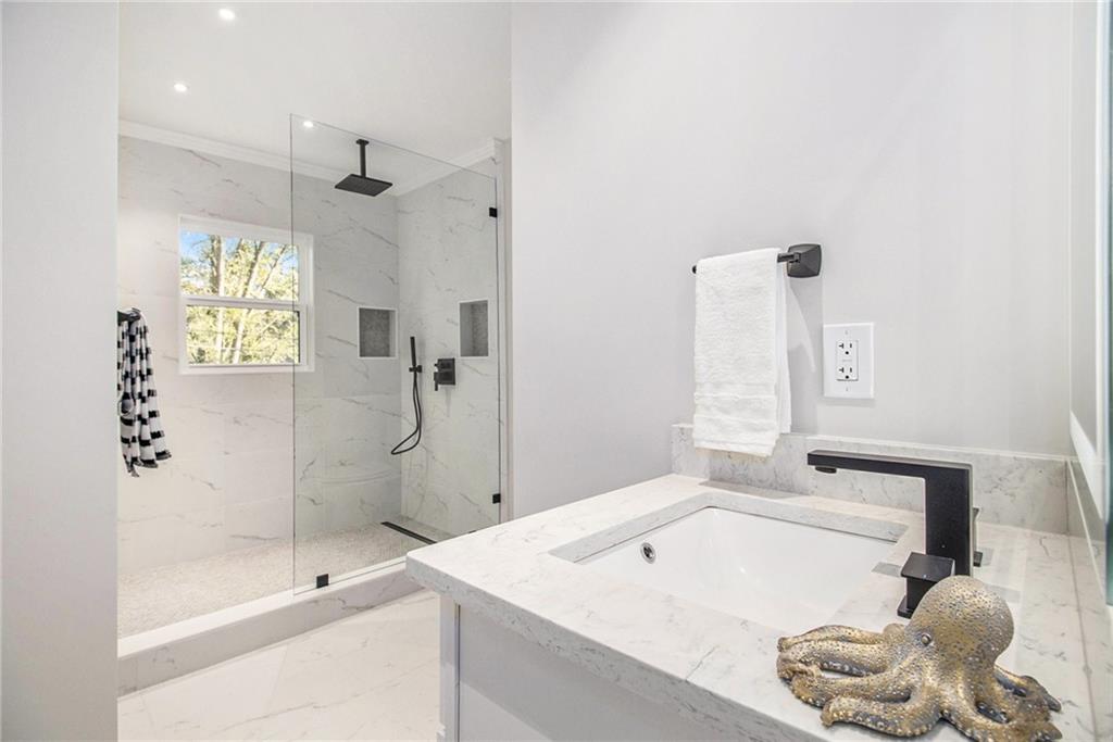 Welcome to 1028 W Nancy Creek Drive, a fully renovated and expanded home in the highly sought-after Oxford Chase neighborhood on the west side of Nancy Creek — where modern design meets timeless comfort. Step inside to find soaring ceilings and abundant natural light pouring through the custom clerestory windows, creating a bright and welcoming atmosphere throughout. The open-concept main level flows effortlessly between the living, dining, and kitchen areas — ideal for both everyday living and entertaining.The gourmet kitchen features a spacious island, high-end finishes and appliances, and direct views of the outdoor living area, complete with a gas log fireplace that extends your living space year-round. Upstairs, you’ll find generous bedrooms including a bonus room above the garage that functions perfectly as a guest suite, media room, or fifth bedroom. The oversized primary suite is a true retreat with two closets and a luxurious ensuite bathroom. The lower level offers additional living space with a second fireplace, ideal for a den, recreation room, or cozy movie nights. Every square inch of this home has been thoughtfully updated and reimagined, combining craftsmanship and comfort for a truly move-in-ready experience. Located outside the floodplain in desirable Oxford Chase, this home is walkable to Montgomery Elementary and Murphey Candler Park, featuring ball fields, a lake, playground, tennis courts, pool, and more! Enjoy unbeatable convenience — Emory St. Joseph’s, Northside, and CHOA-Scottish Rite hospitals are just a mile away, and Marist, OLA, St. Martin’s Episcopal School, and Oglethorpe University are all nearby.