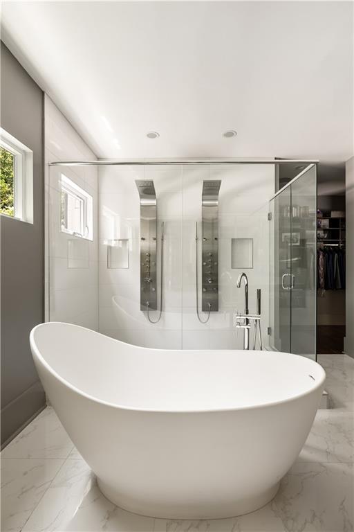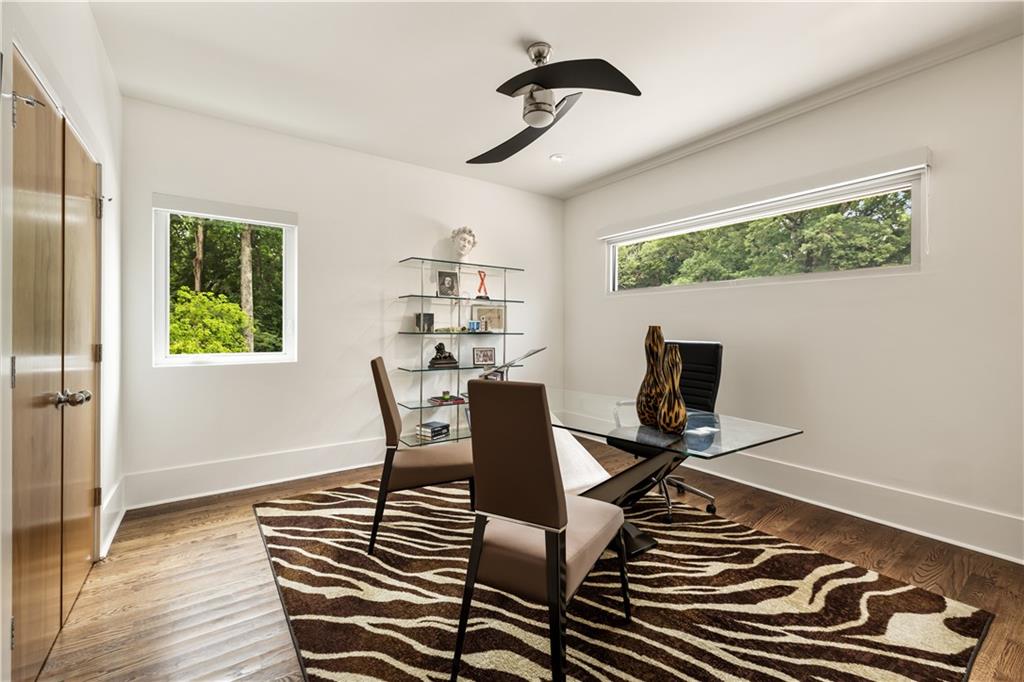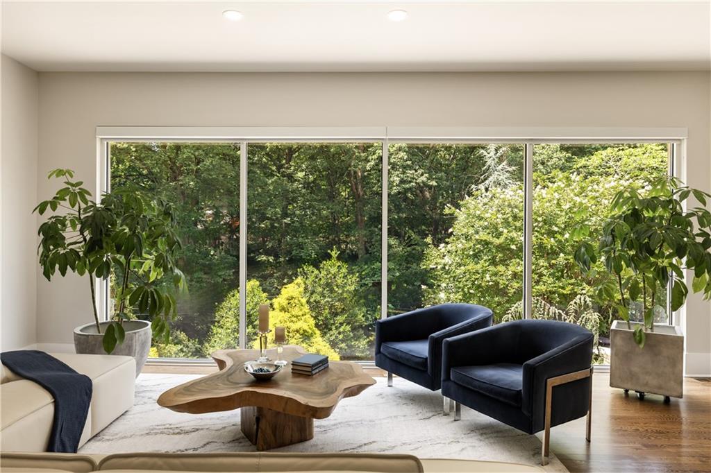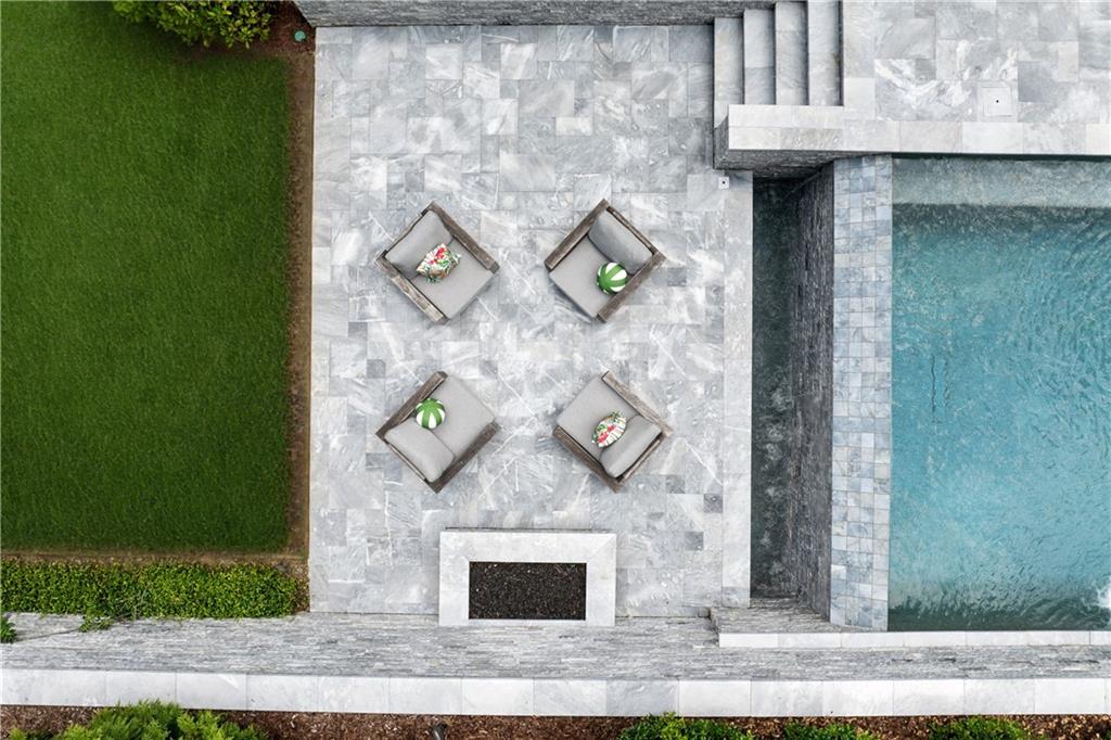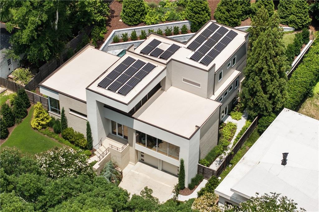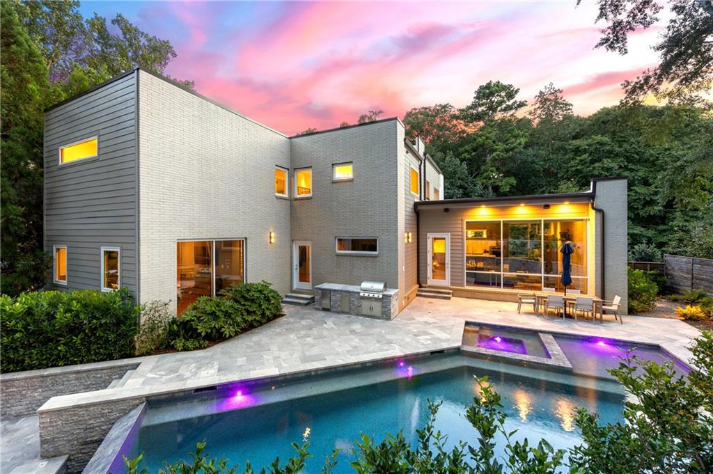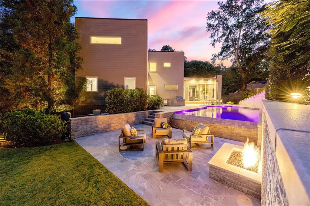 Perched on a quiet hilltop overlooking Lavista Park, this modern showpiece pairs bold architecture with serene privacy. Walls of glass and lush landscaping create dramatic street appeal, while inside, soaring ceilings, a floating glass staircase, and hardwoods throughout set the tone for sophisticated living. Set on one of Lavista Park’s best streets, the home opens to a private, resort-style backyard. The outdoor oasis features a new heated PebbleTec saltwater pool with sun shelf, waterfalls, and infinity edge, complemented by marble retaining walls and patios. A fully equipped outdoor kitchen, fire pit, and automated landscape lighting and sound complete the unmatched indoor/outdoor lifestyle. The flexible layout includes a main-level primary suite with spa bath; private guest suites upstairs and on the terrace level; and three indoor plus three outdoor living areas for entertaining. A rooftop terrace with fireplace, wet bar, and skyline views extends the experience above the treetops. Every window is thoughtfully placed to frame dramatic natural landscapes, blurring the line between architecture and nature. At the heart of the home, the chef’s kitchen balances clean-lined design with maximum functionality. Features include custom flat-paneled cabinetry, crisp quartz counters, dual full-size sinks, twin dishwashers, double ovens, a walk-in pantry, and an architectural backsplash. A dramatic brick feature wall extends from the exterior into the living spaces, visually connecting the resort-inspired yard to Lavista Park and beyond. Elevator-capable design and a terrace-level multigenerational suite—with second laundry and plumbing for a future kitchen—offer options for long-term guests or extended living. Additional features include a fully finished two-car garage with EV charging, whole-house audio (including rooftop and pool), app-controlled lighting, irrigation, and perimeter fencing with security cameras. A full solar array provides efficient, low-maintenance living through a self-sustaining closed-loop system. Situated in Lavista Park—an architectural enclave celebrated for its leafy streets, green space, and unmatched centrality to Emory, CHOA, the CDC, Midtown, and Buckhead—1242 Wild Creek Trail is not just a residence but a lifestyle destination.