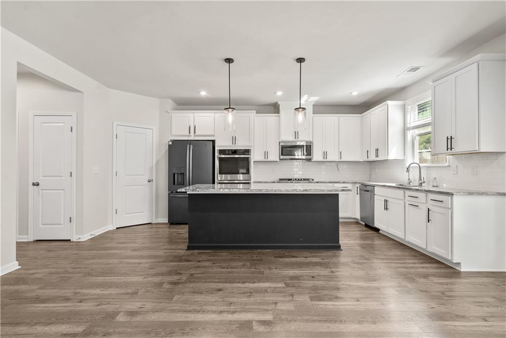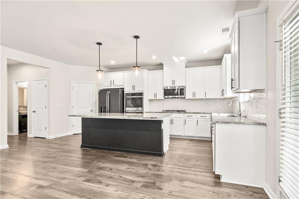 Discover the perfect blend of space, style, and sophistication in this exceptional 5-bedroom, 4.5-bath home offering over 3,000 square feet of beautifully designed living space. From the moment you step inside, you’ll be captivated by the open-concept layout that effortlessly connects the gathering room, casual dining area, and gourmet island kitchen—perfect for entertaining or everyday living. The kitchen is a chef’s dream, featuring elegant white cabinetry, gleaming quartz countertops, stainless-steel appliances, and rich hardwood flooring. A versatile guest suite with a full bath on the main level provides an ideal retreat for visitors or the perfect setup for a private home office. Upstairs, unwind in the luxurious Owner’s Suite complete with a spa-inspired bath featuring an oversized shower and dual walk-in closets. Three spacious secondary bedrooms, a loft for additional living or play space, and a conveniently located laundry room complete the upper level. With its thoughtful design, modern finishes, and generous layout, this home truly has it all—comfort, functionality, and timeless appeal. Don’t let this one get away!