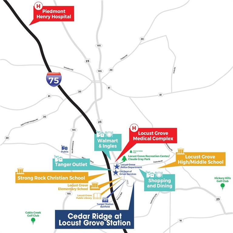 SPECIAL FINANCING CALL TODAY FOR LOW INTEREST RATE OPPORTUNITIES. Swim community in an amazing location just steps from Tanger Outlet with easy access to I-75. Welcome home to Cedar Ridge at Locust Grove Station in sought after Locust Grove, GA. The Hayden floorplan at Cedar Ridge at Locust Grove Station is a two-story home offering approx. 2,511 sq. ft. of living space across 5 bedrooms and 3 full bathrooms. The 2-car garage ensures plenty of space for vehicles and storage. Your style, your way. This expansive plan is one of our most popular, offering a flex space that could be tailored to become a dedicated home office or formal dining room. A guest bedroom with full bath on the main provides the ultimate retreat for visiting family and guests. There is also a central family room that opens to the kitchen, a space that boasts an extended island with bar stool seating, granite countertops and stainless-steel appliances. Upstairs features a generous bedroom suite with spa-like bath featuring dual vanities, shower and separate garden tub plus lots if closet space. There is also a versatile loft perfect as a secondary family room for movie nights and game day. And you will never be too far from home with Home Is Connected.® Your new home is built with an industry leading suite of smart home products that keep you connected with the people and place you value most. Photos used for illustrative purposes and do not depict actual home.