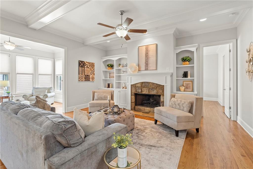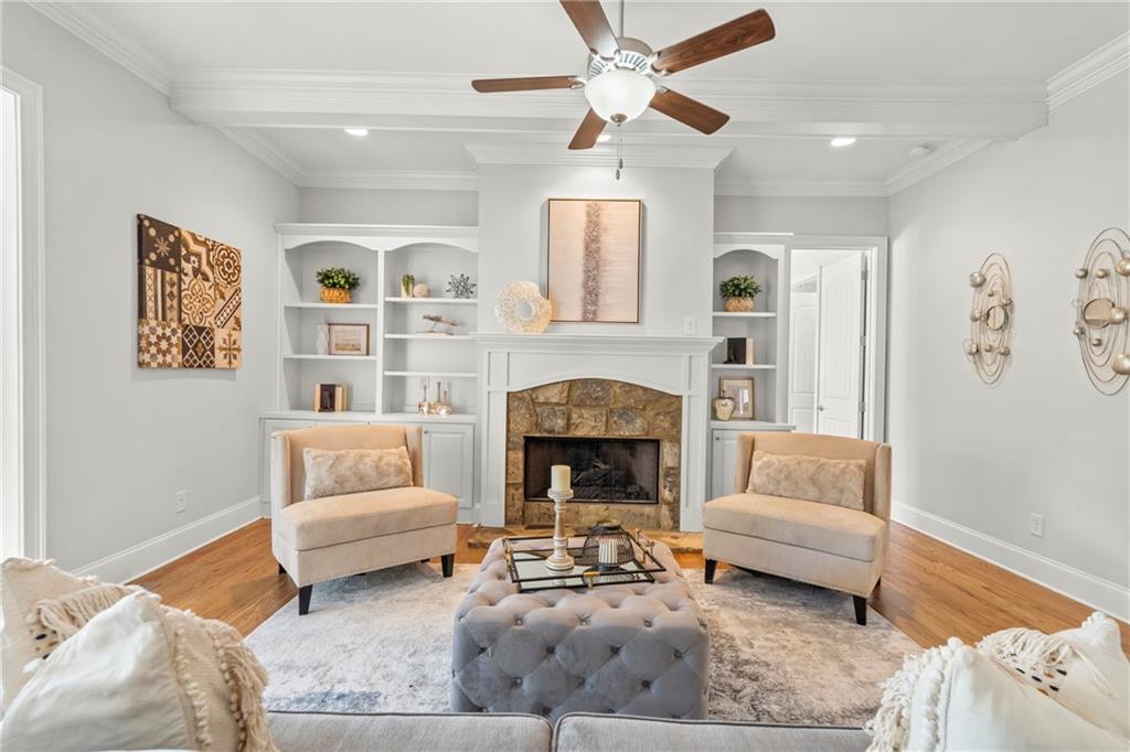 - FeaturesBeamed Ceilings, Bookcases, Crown Molding, Double Vanity, Entrance Foyer 2 Story, High Ceilings 10 ft Main, Tray Ceiling(s), Walk-In Closet(s), Wet Bar